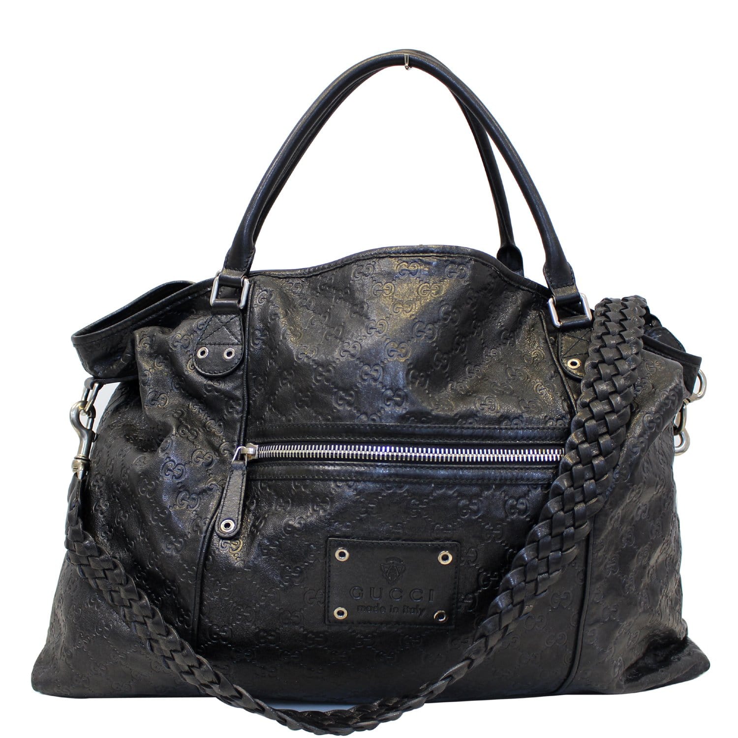 GUCCI Black Leather Signature Extra Large Tote Bag 189680