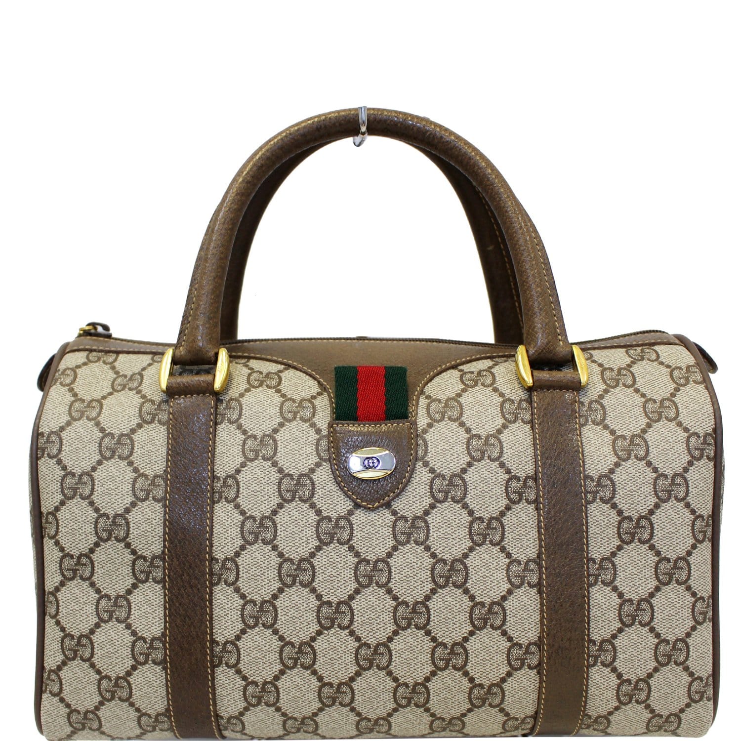 GUCCI Boston Doctor GG Canvas Satchel Handbag Taupe
