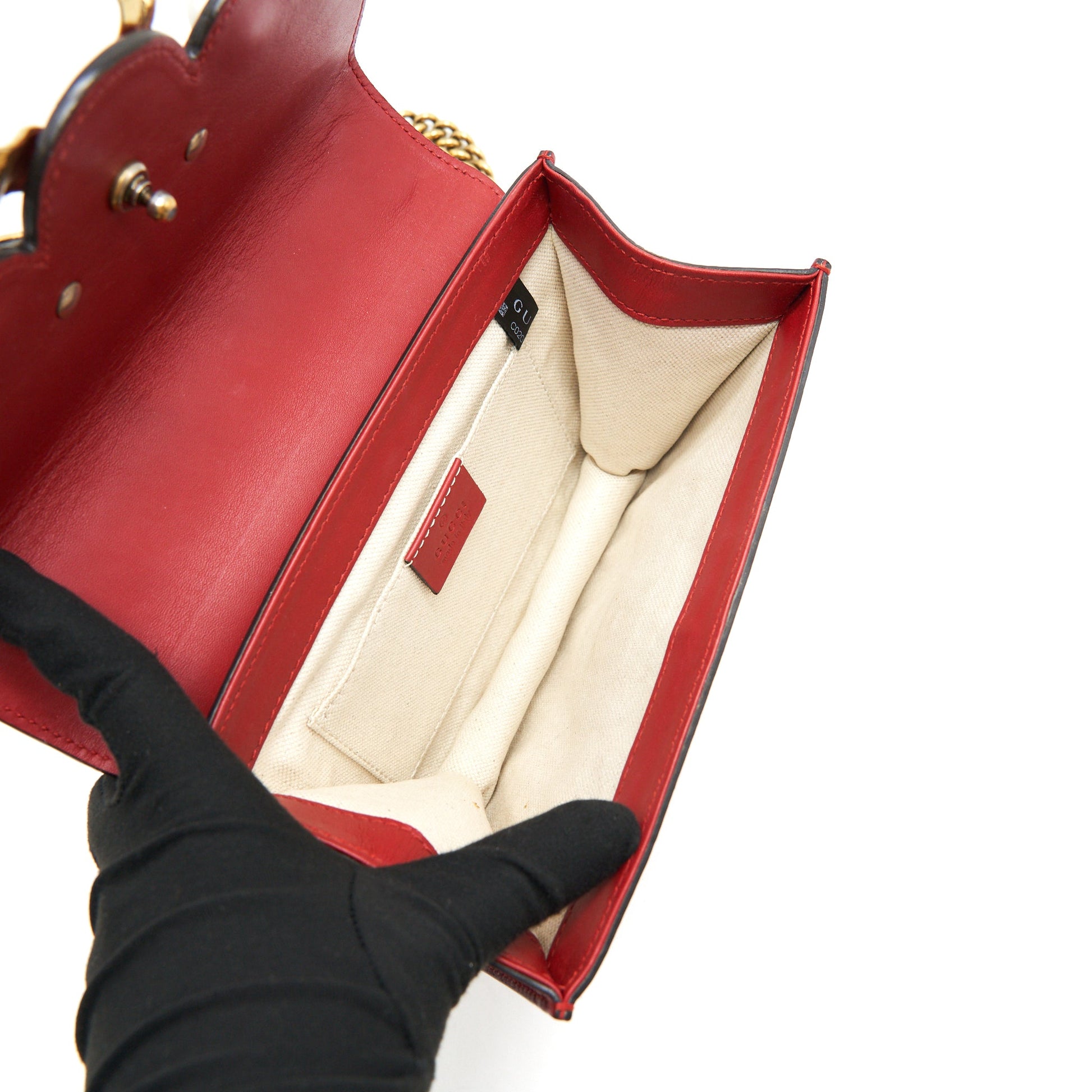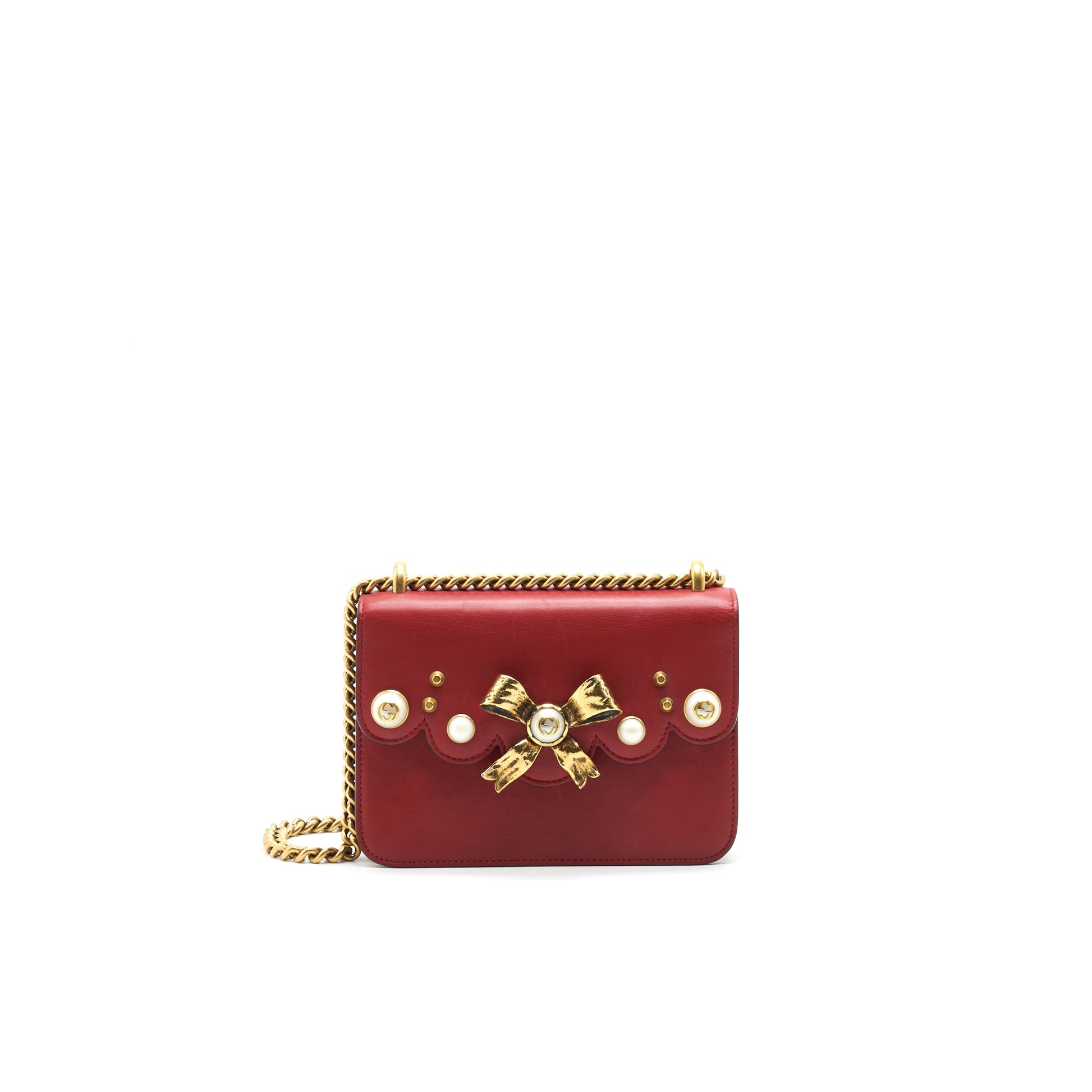 Gucci Bow and Pearl Leather Chain Shoulder Bag Red