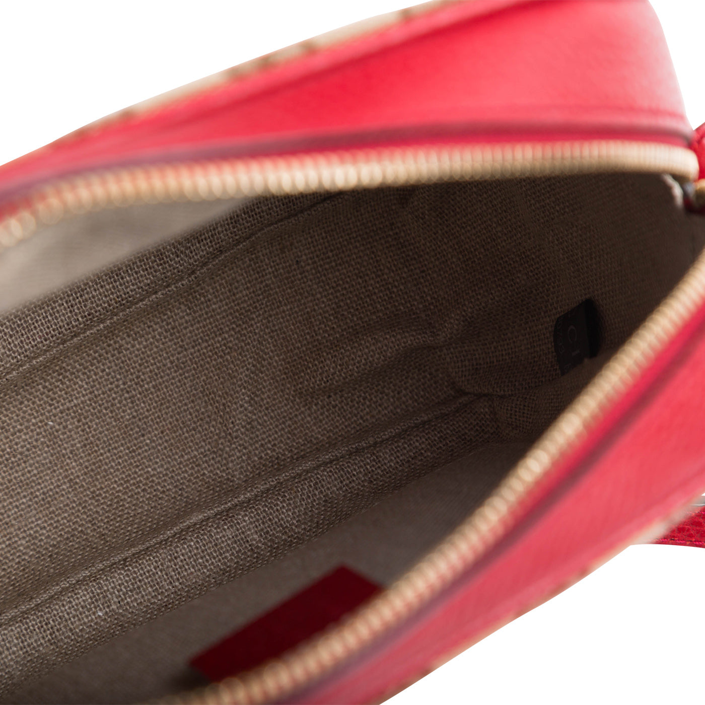 The Bree Disco Bag is the perfect go-to bag from Gucci! The bag is crafted from beige and ebony canvas, with the brand�s iconic GG logo, red leather trim and a hanging GG charm. It is spacious enough for all your essentials, making it a perfect everyday companion. The minimal style makes it suited to almost any outfit. The adjustable leather strap allows you to wear it across the body or on the shoulder.