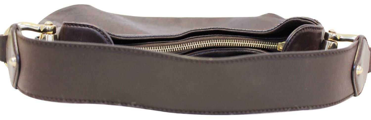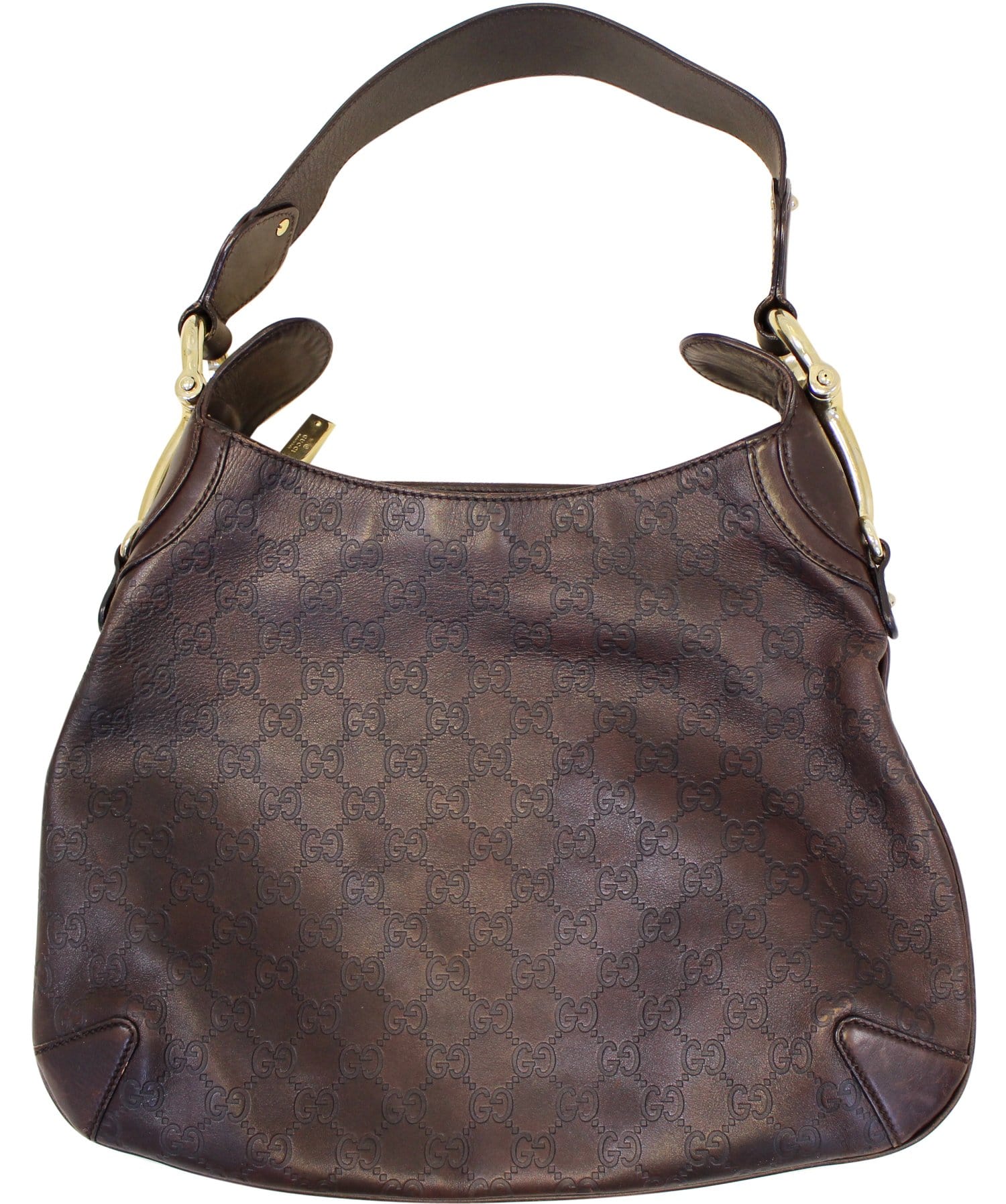 �This Gucci Brown Guccissima Leather Horsebit Creole Hobo Bag features a chic and slouchy silhouette with gorgeous GG embossed brown leather and goldtone horsebit details on the sides.�
