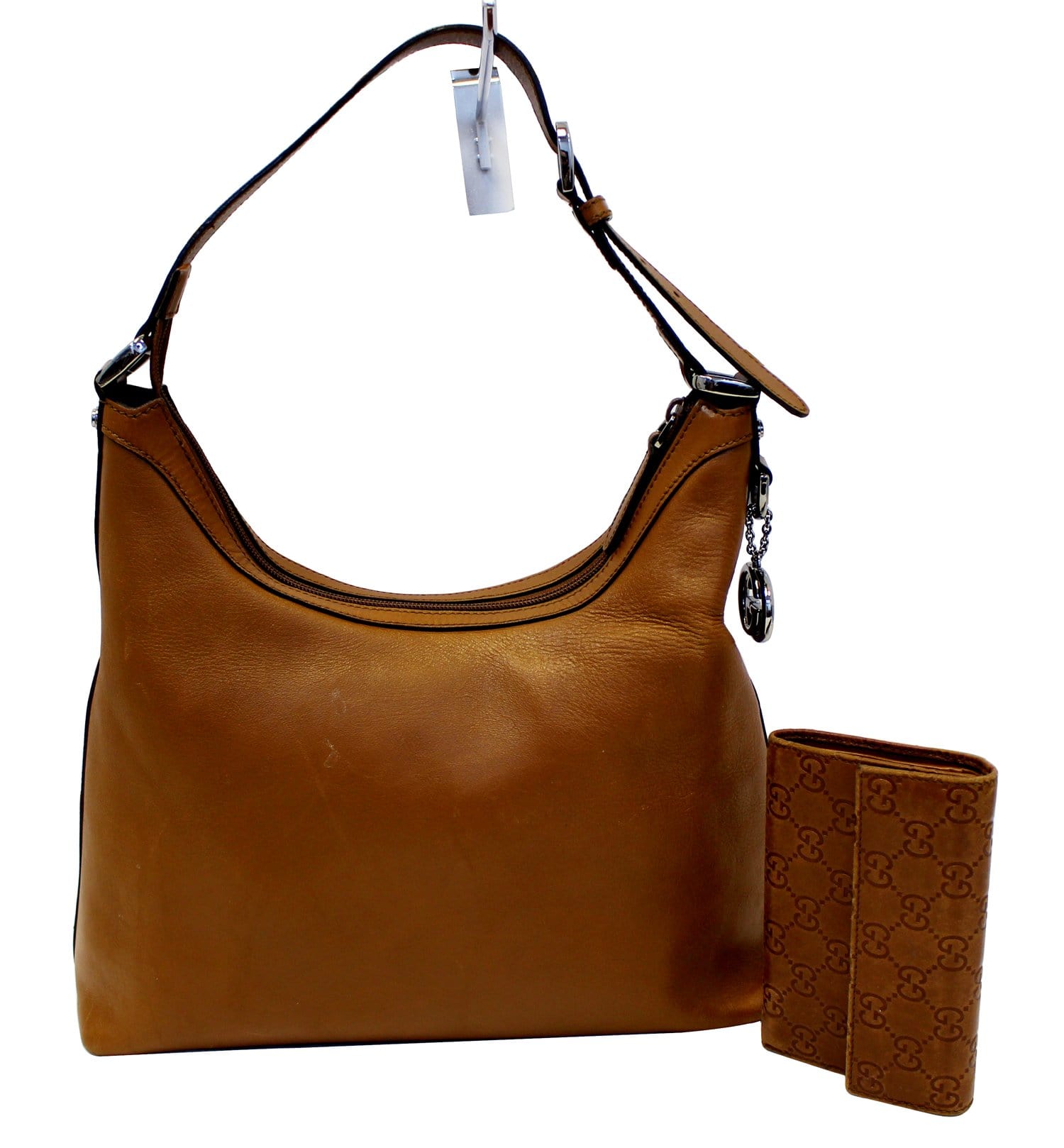 GUCCI Brown Leather Hobo Bag with Matching Wallet