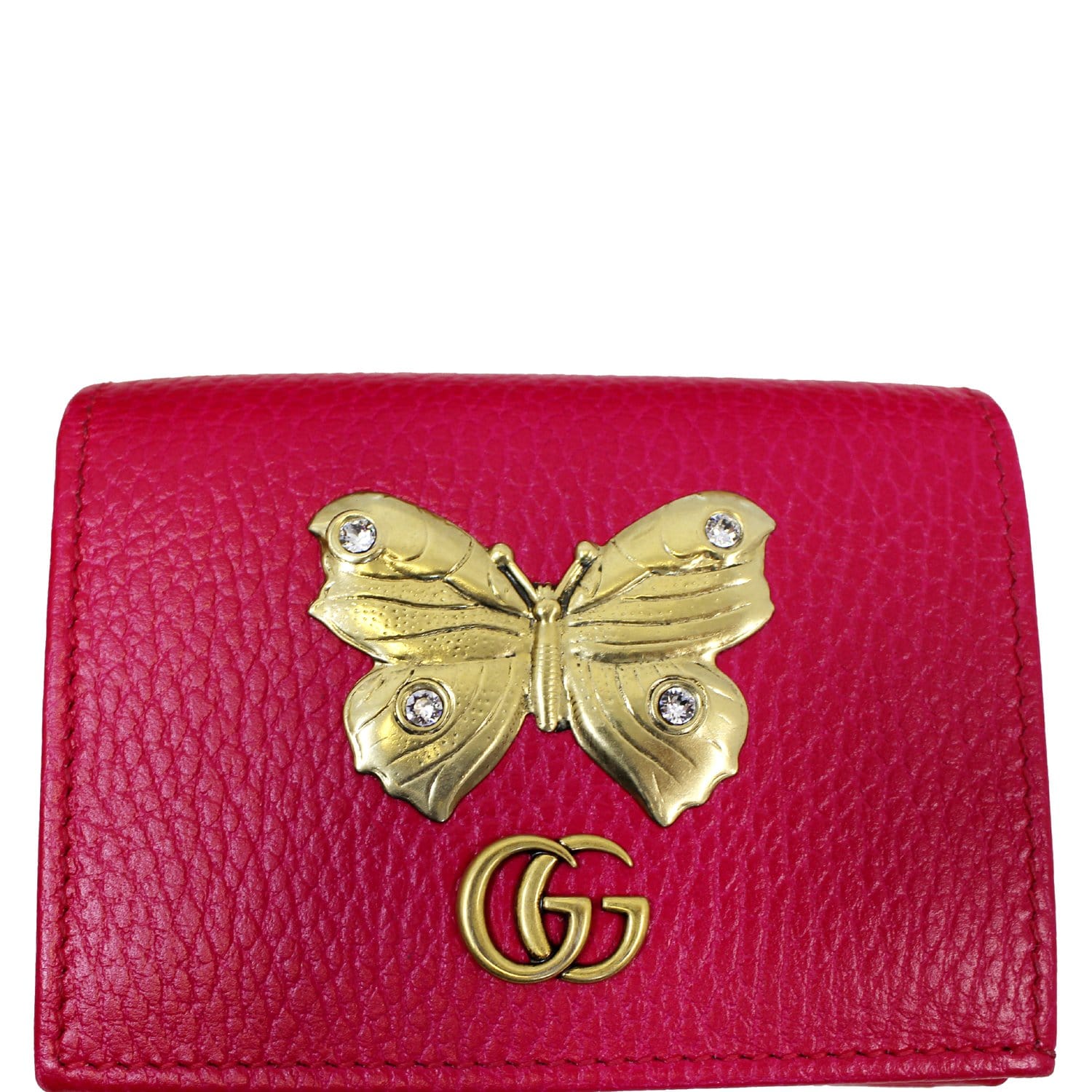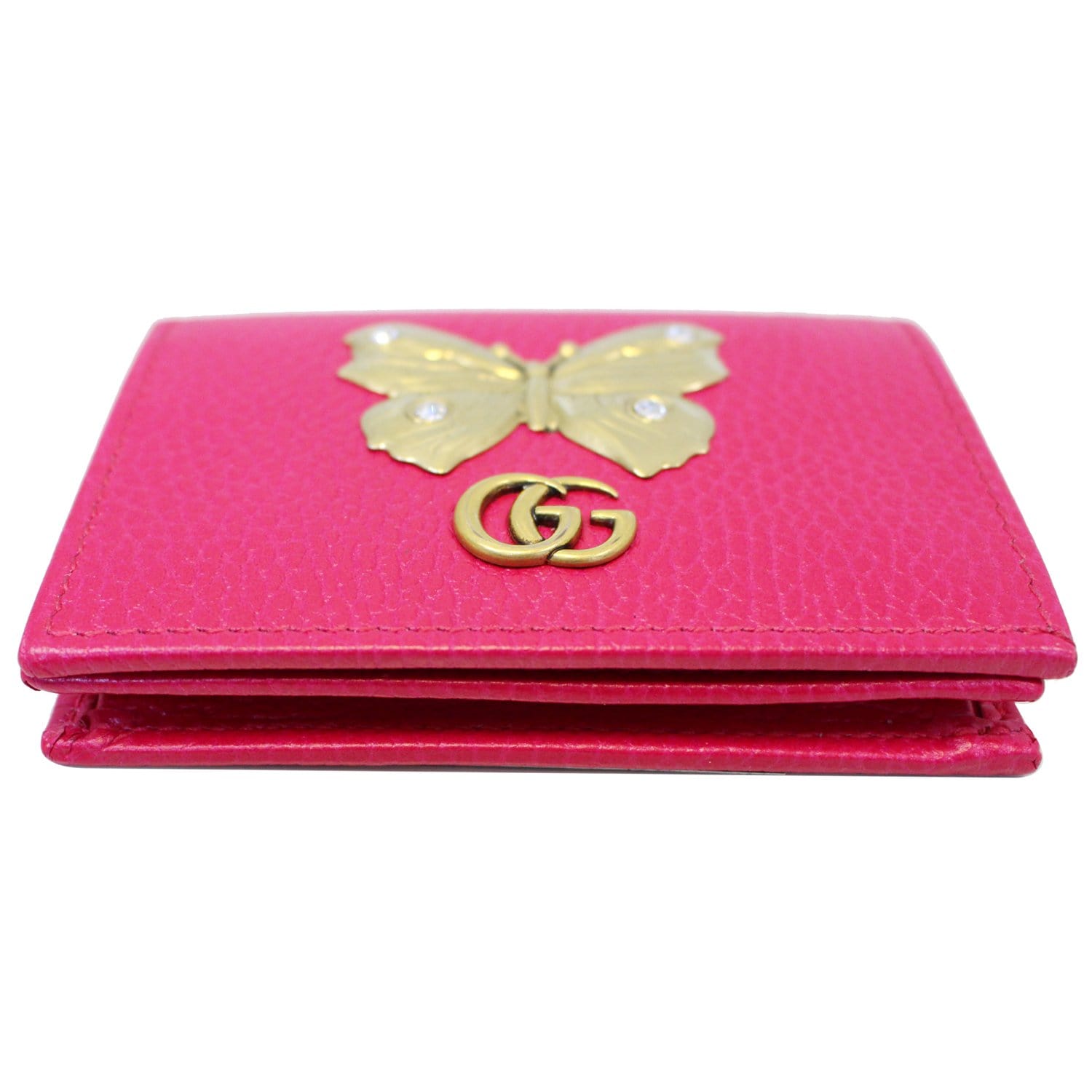 GUCCI Butterfly Leather Card Case Wallet Pink 499361