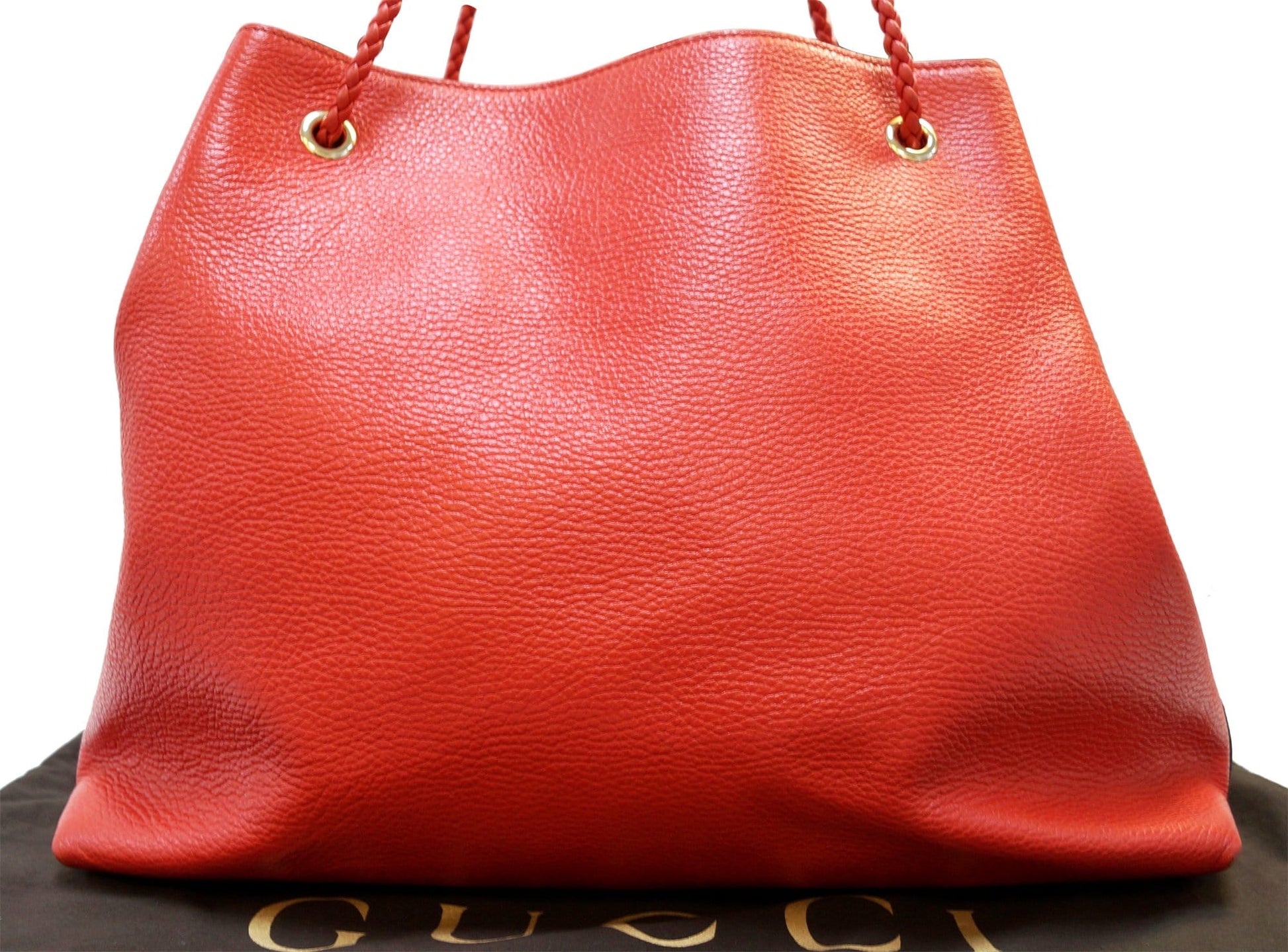 GUCCI Calfskin Large Braided Handle Gifford Tote Bag Red