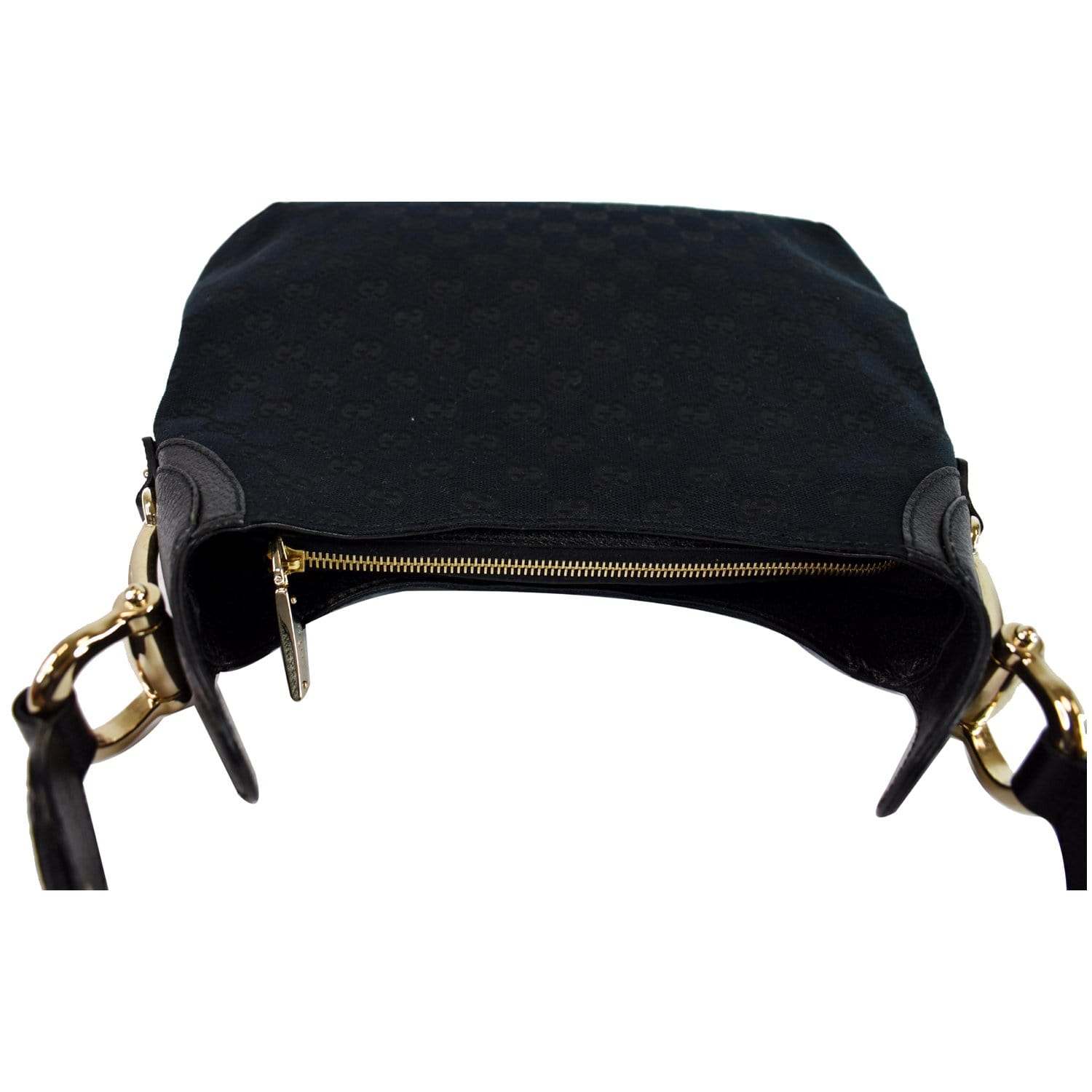GUCCI Creole Monogram Leather Hobo Bag Black 145826