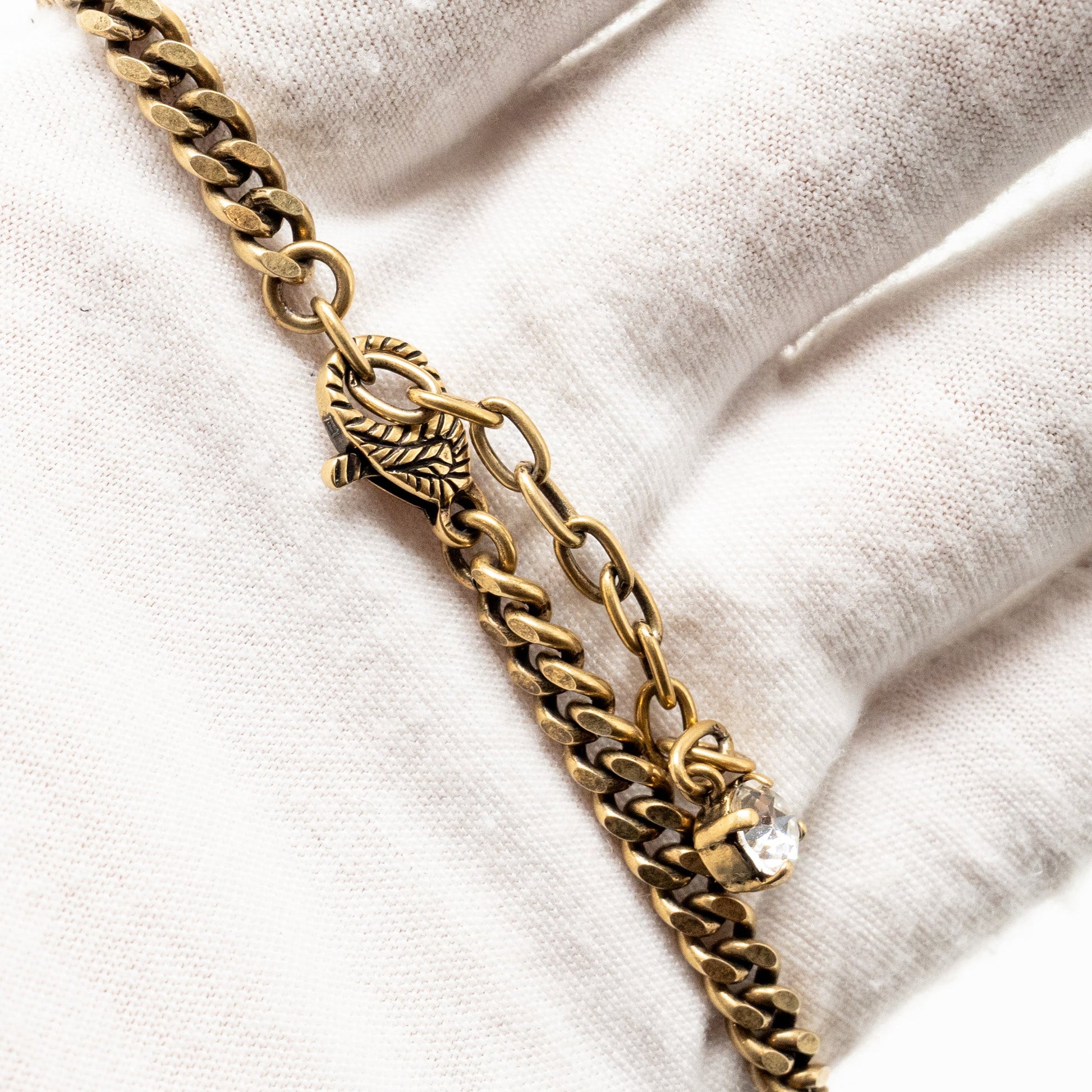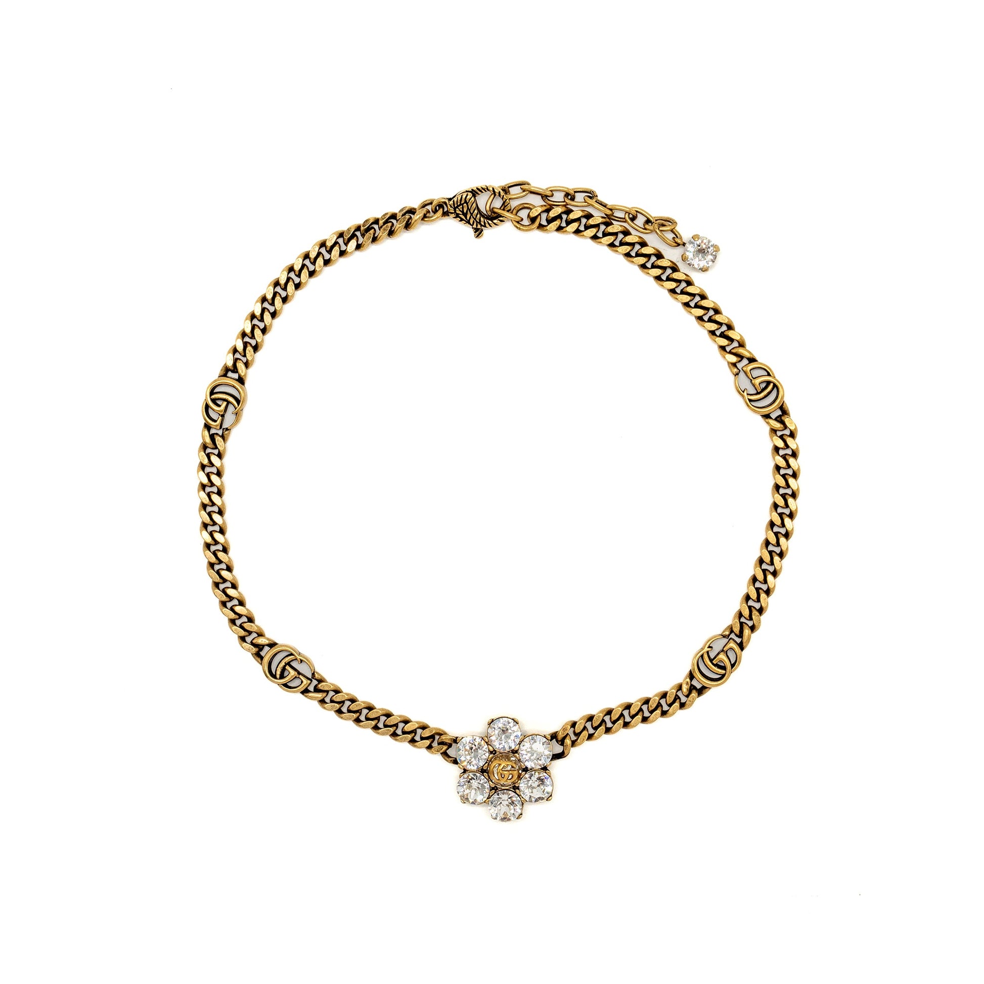 Gucci Crystal Double G Necklace Metal Aged Gold