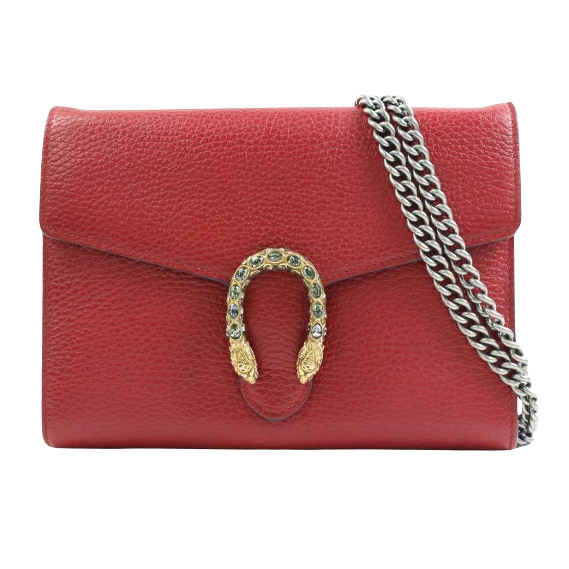 Introducing the Gucci Dionysus Dark Red Leather Chain/Shoulder Wallet, a statement piece that seamlessly combines luxury and functionality. Crafted from exquisite leather in a striking dark red hue, this wallet exudes sophistication and elegance. Its versatile design allows it to be worn as a shoulder bag or used as a wallet, making it perfect for any occasion.