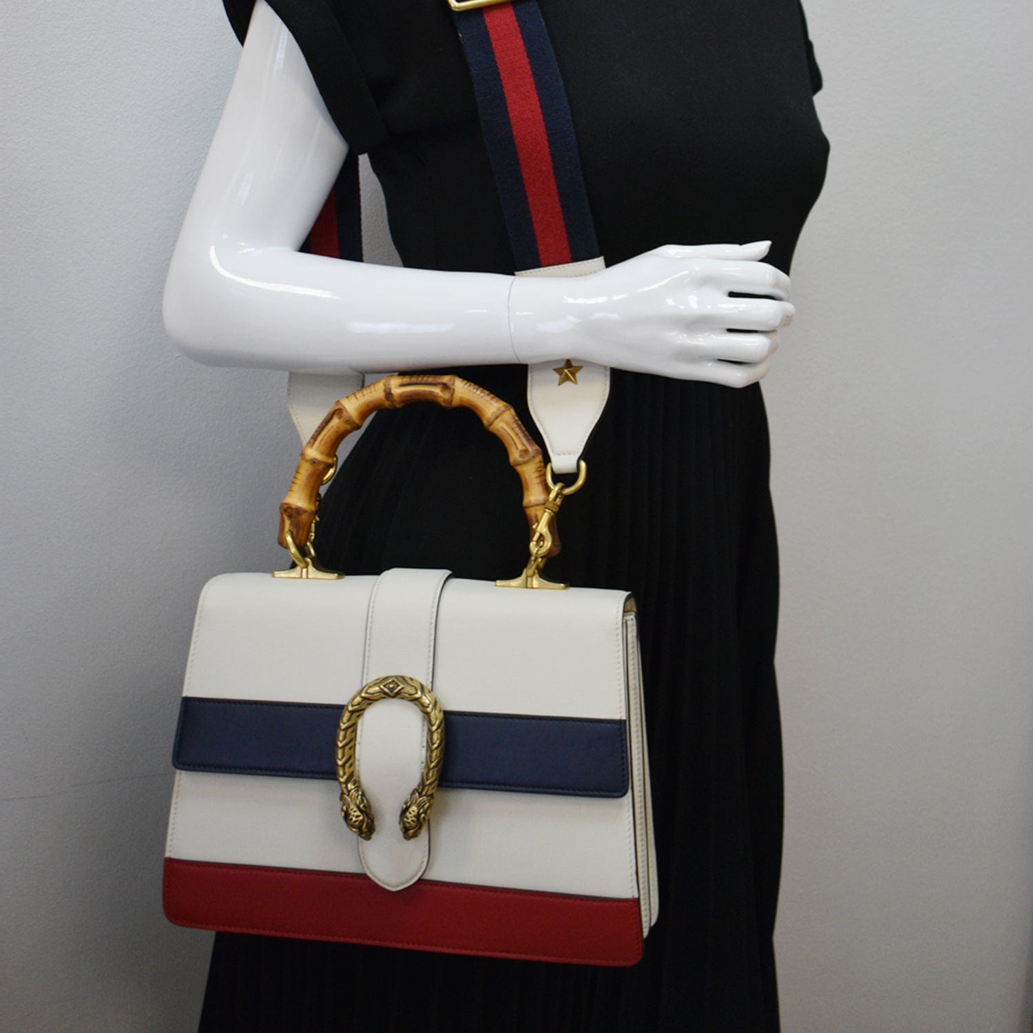 GUCCI Dionysus Bamboo Medium Leather Top Handle Shoulder Bag White - 10% Off