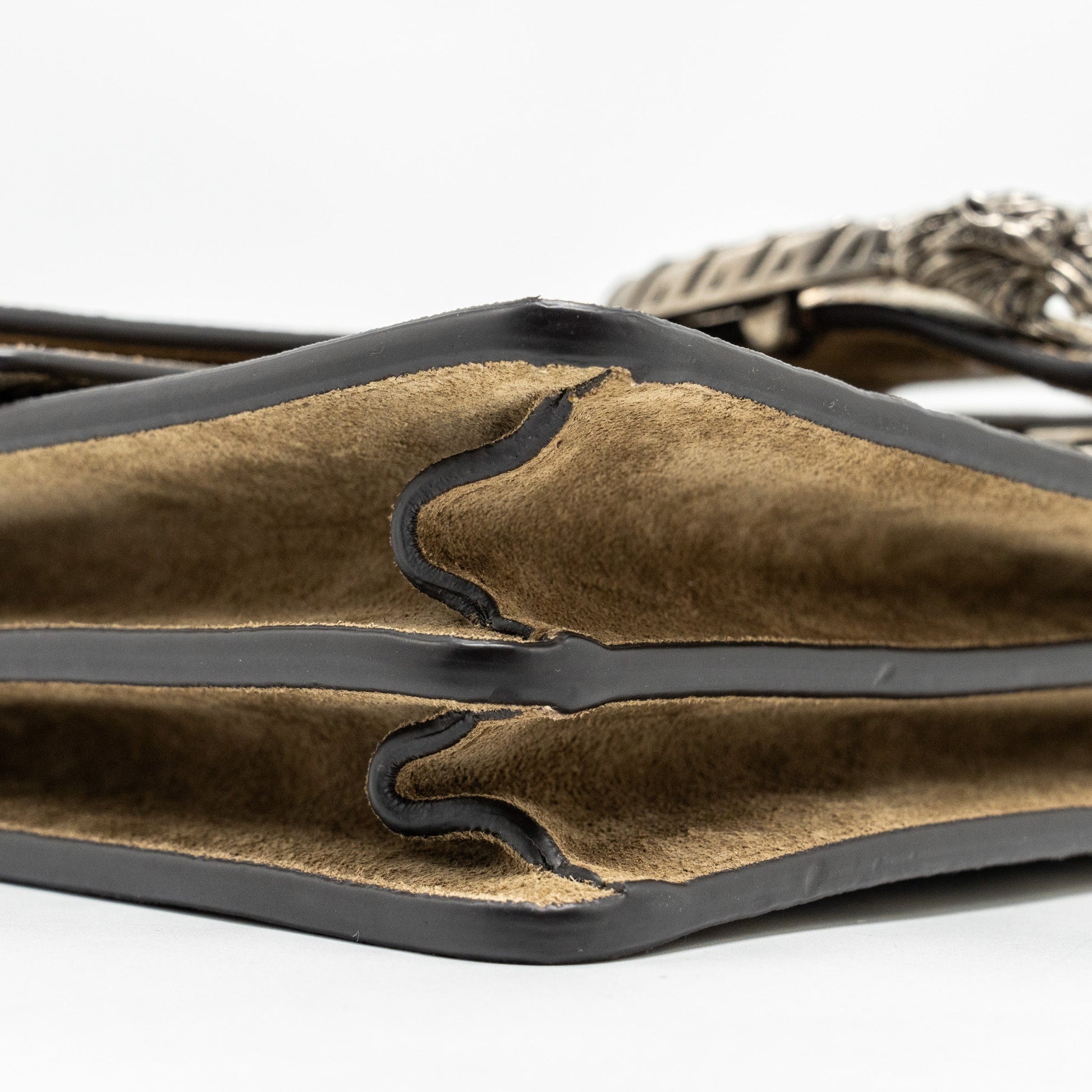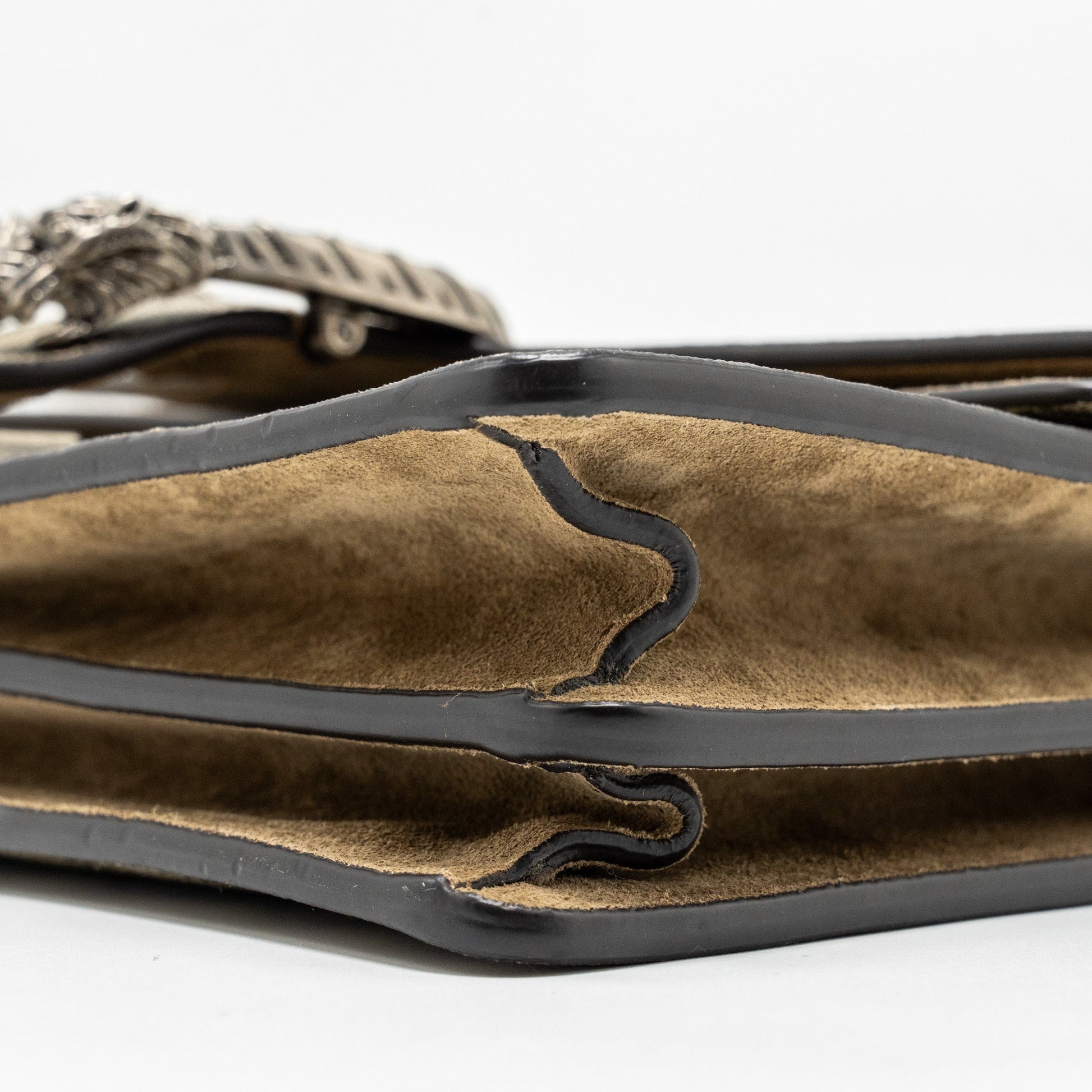 Gently ( This item is in excellent condition with slight dents on suede leather.)