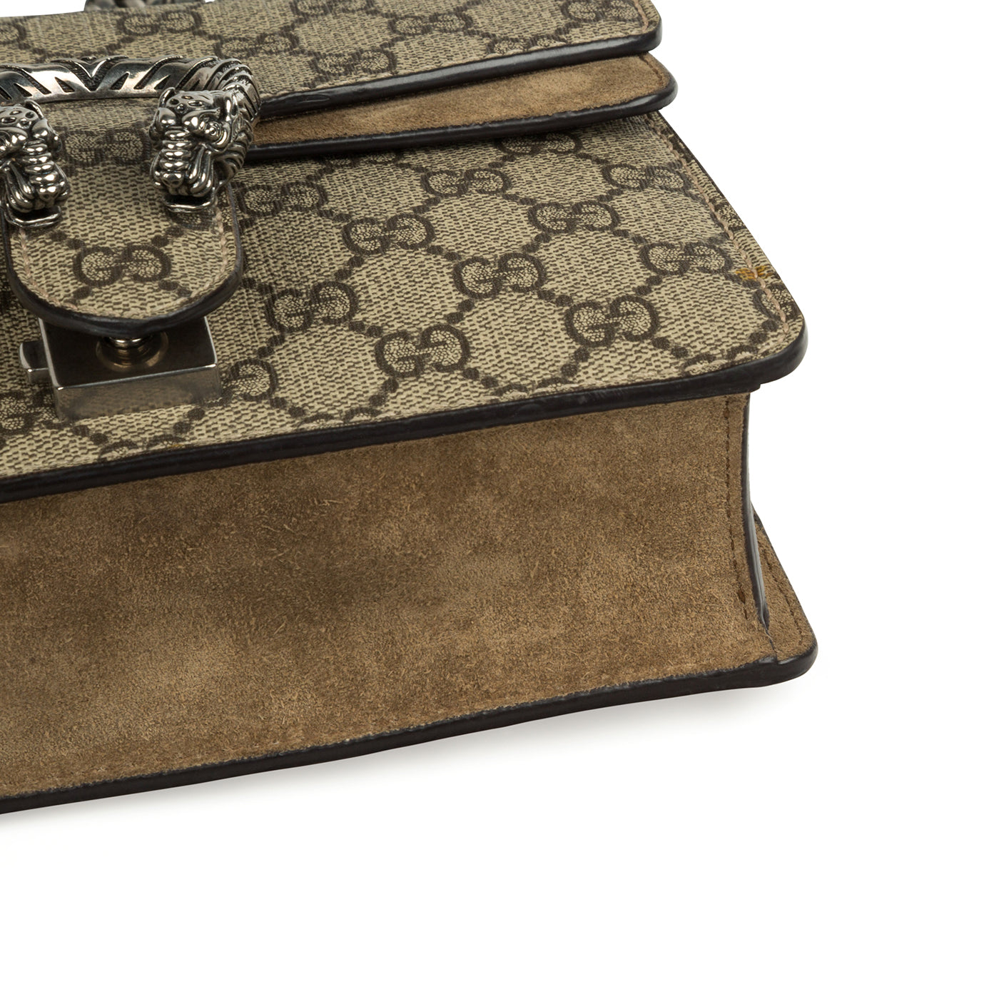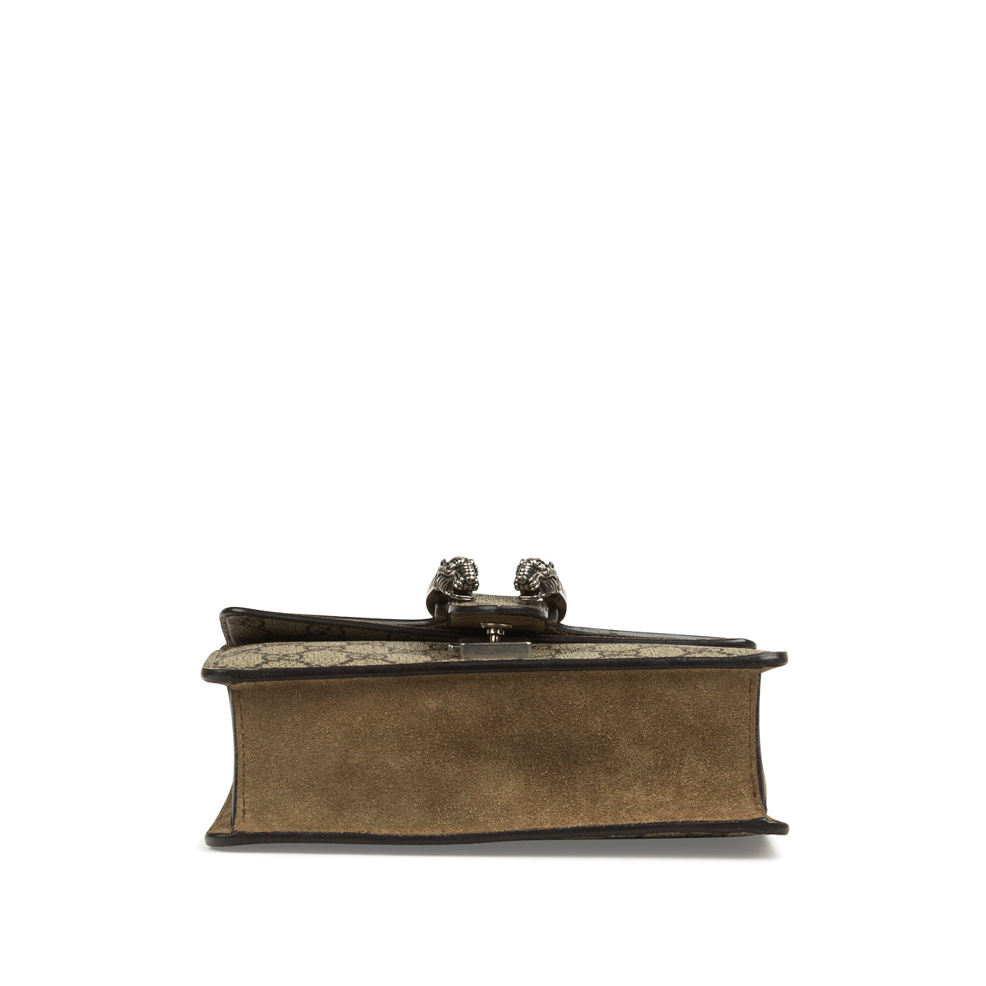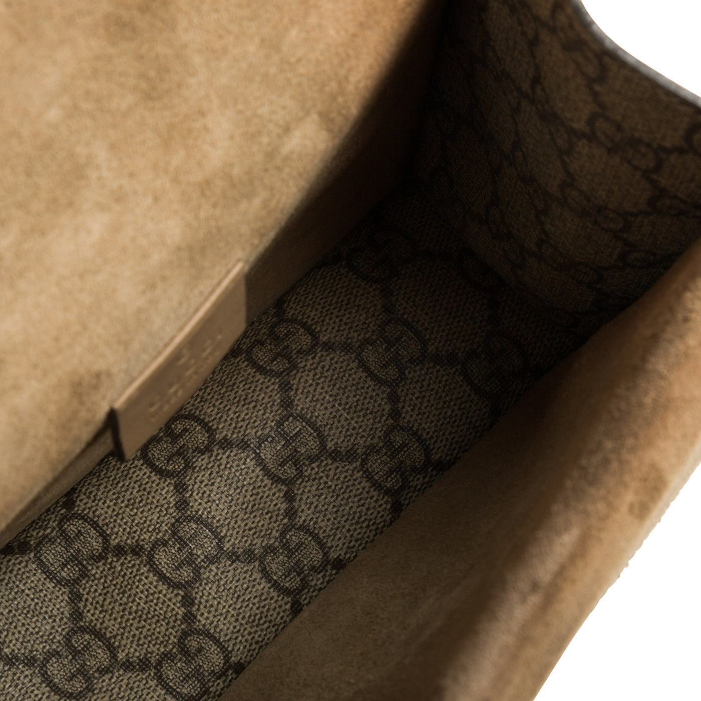 The beige Dionysus GG Supreme bag is perfect for all GG Supreme canvas lovers. The bag also features suede sides and an antique silver-toned sliding chain that can be worn multiple ways. This Dionysus is best suited with every outfit and although a small sized bag it has a maximum impact.