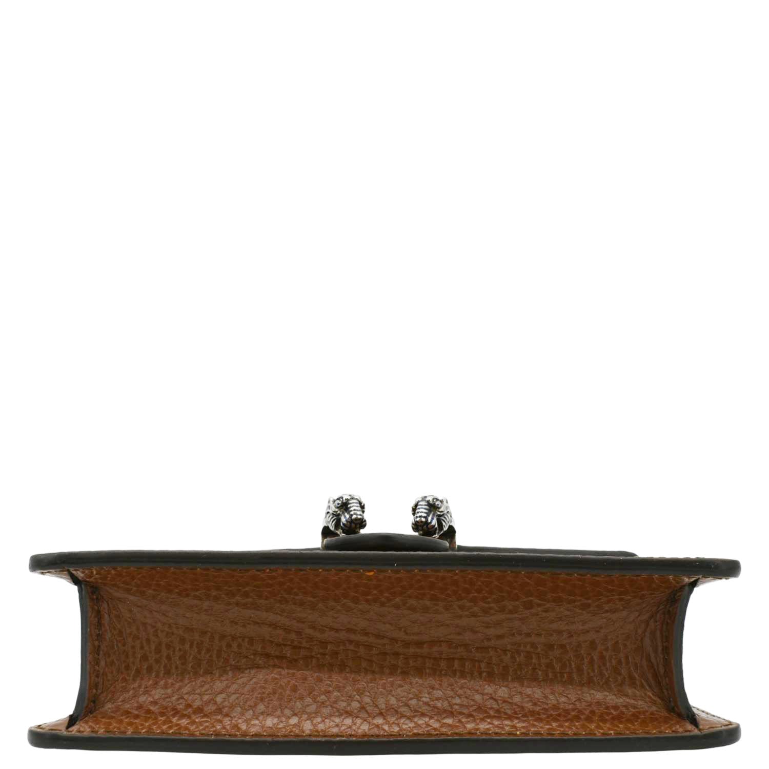 The Gucci Dionysus Super Mini Crossbody Bag in GG Supreme Canvas features a chic design with signature tiger head hardware. Compact yet stylish, it’s perfect for carrying your essentials.