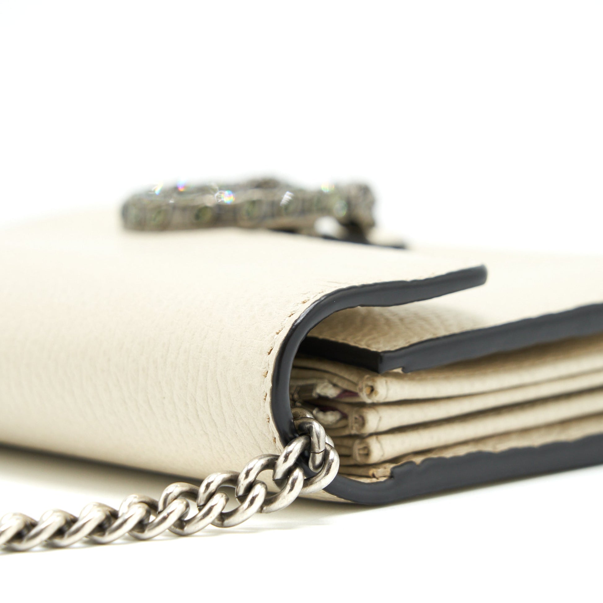 Gucci Dionysus Mini Chain Wallet Grained Calfskin White SHW