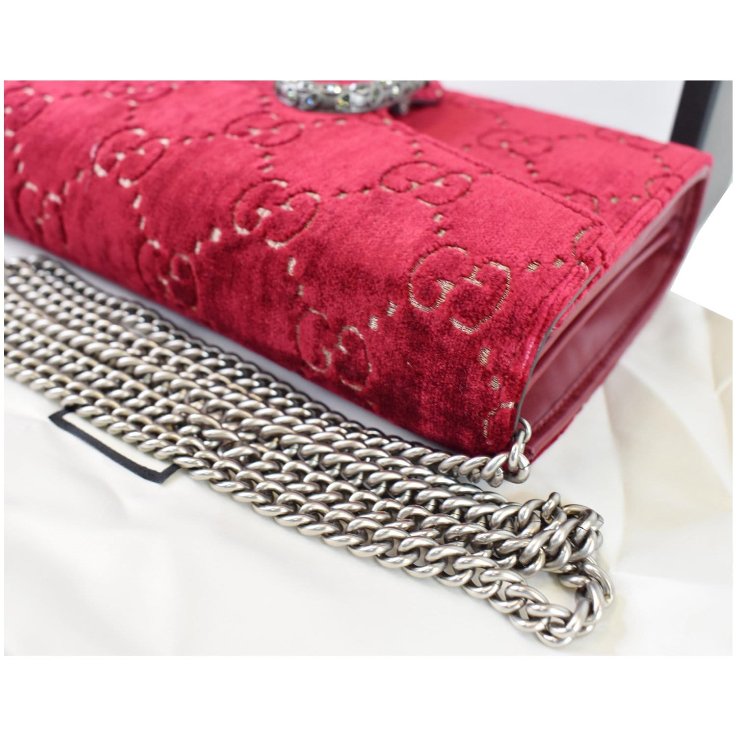 GUCCI Dionysus Mini Velvet GG Monogram Crossbody Chain Wallet Red 401231