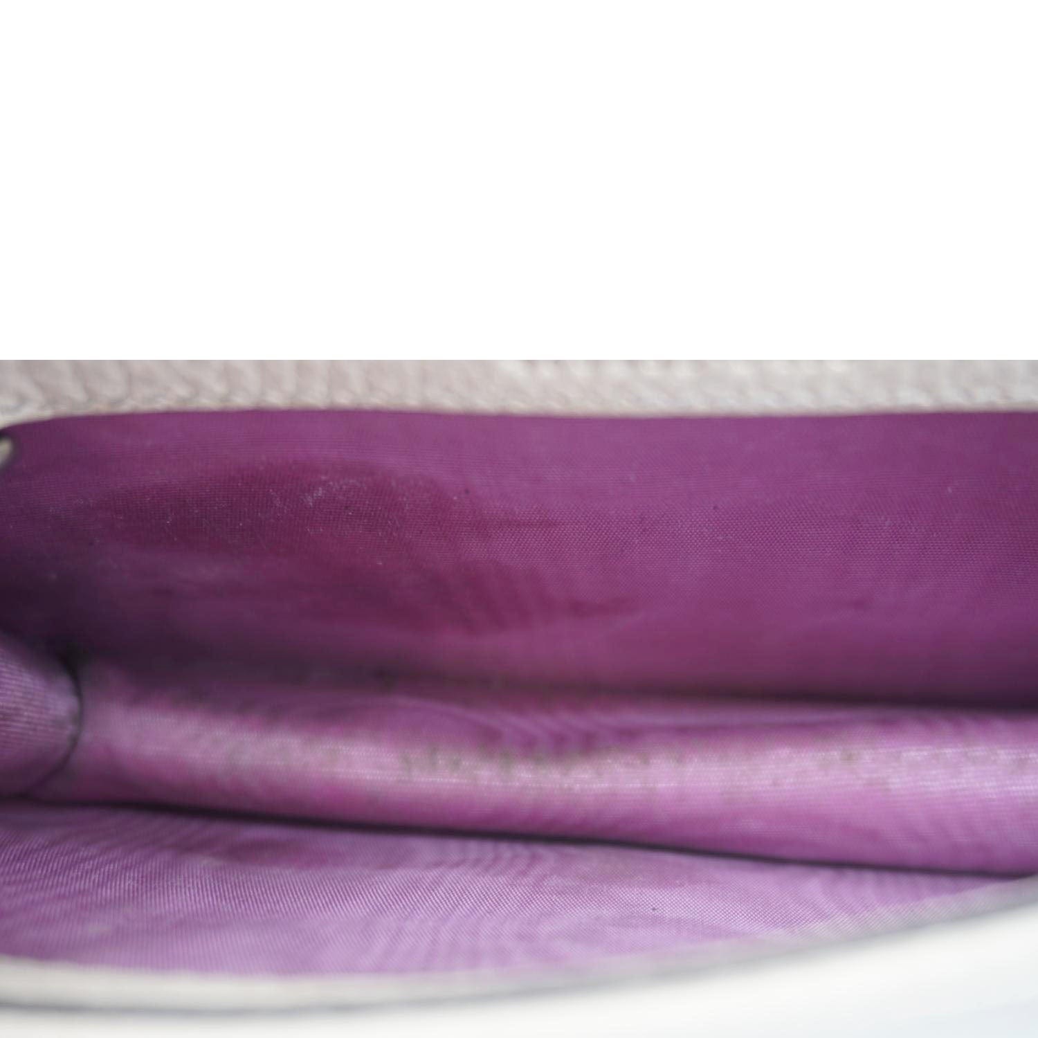 Good - The Item shows signs of use, including rubbed and peeled corners, and has stain marks on the interior. Its silver color hardware is in good condition with light signs of use. It has peeling and ruscuus on the leather. There is no unpleasant smell within the item.