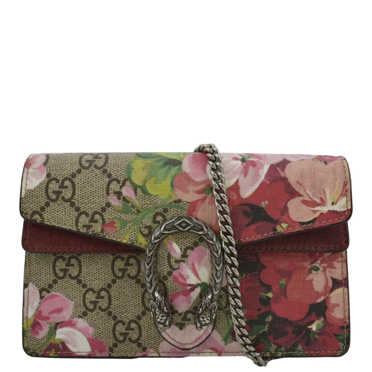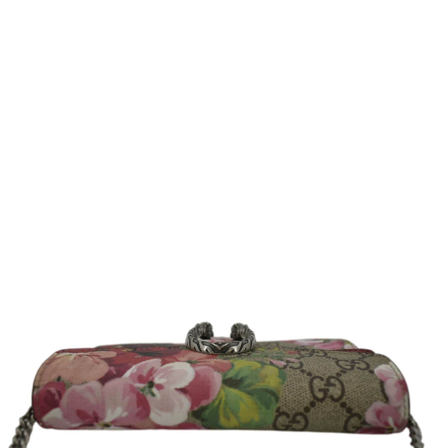 GUCCI Dionysus Super Mini Blooms GG Supreme Canvas Crossbody Bag Dry Rose 476432