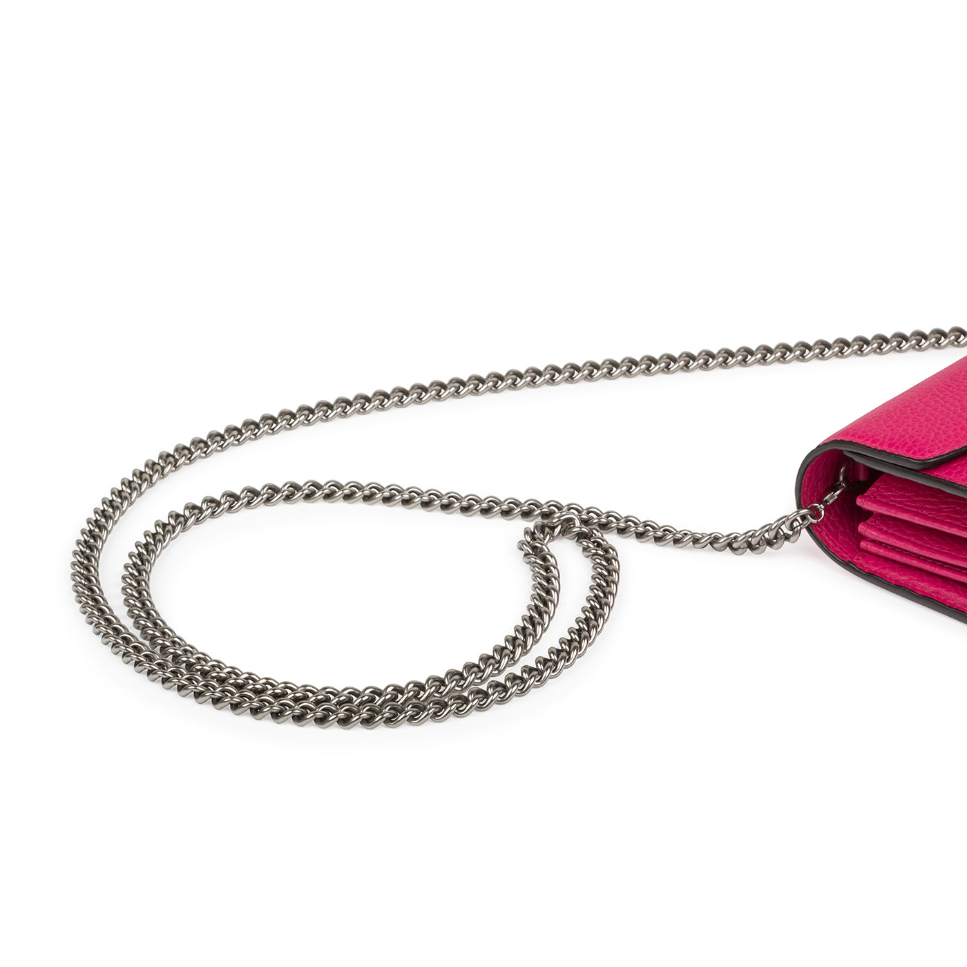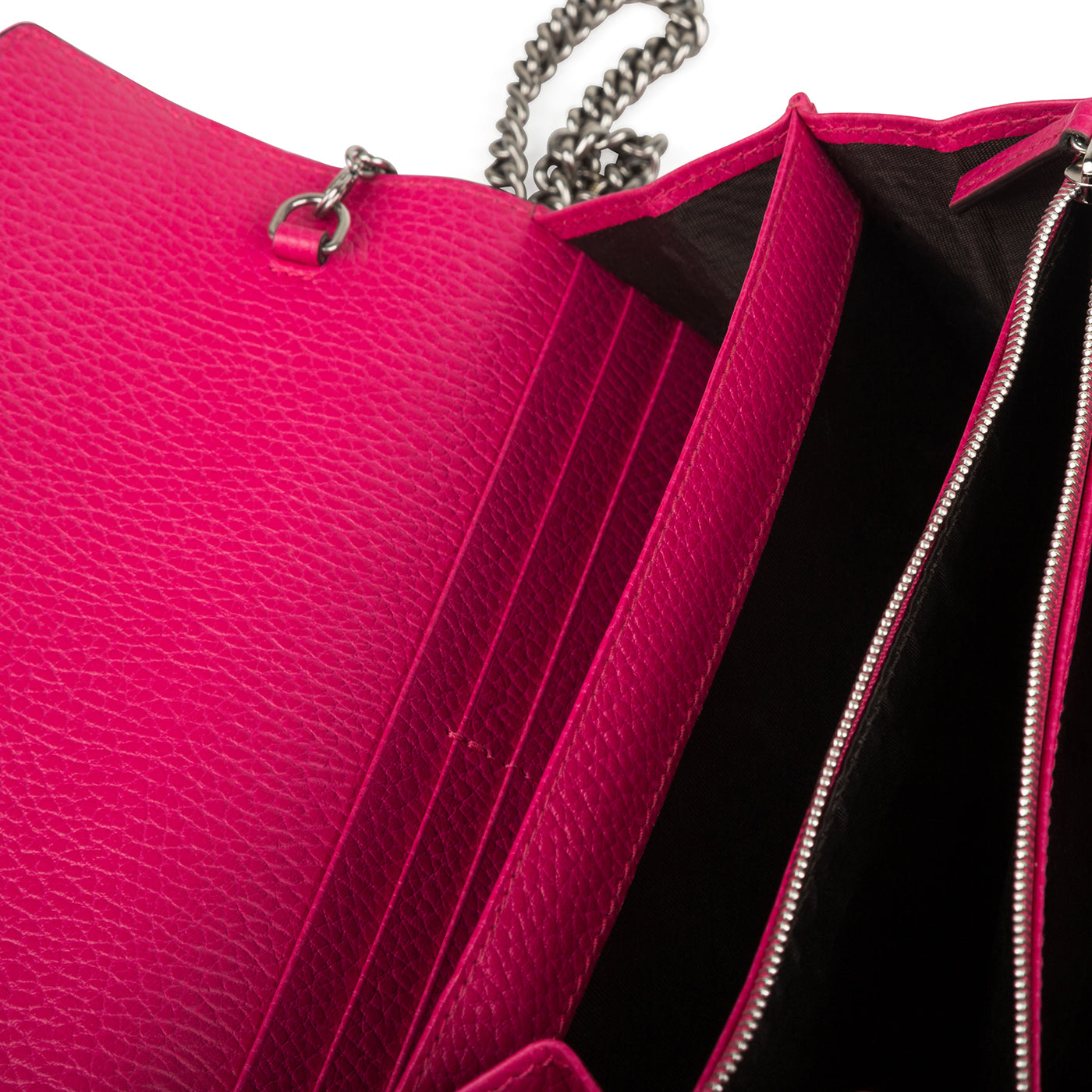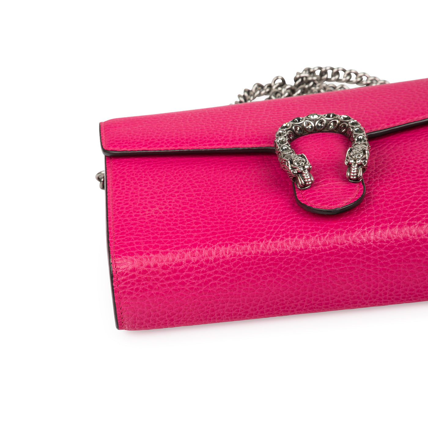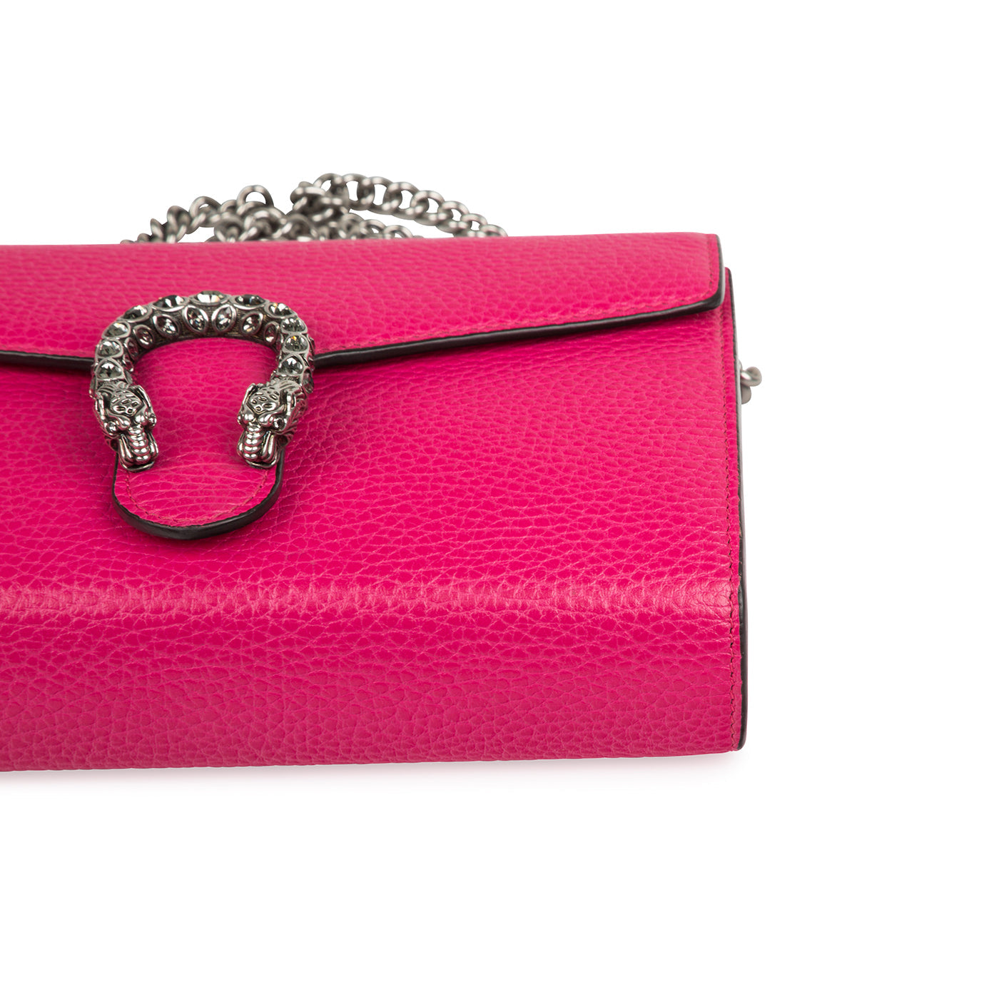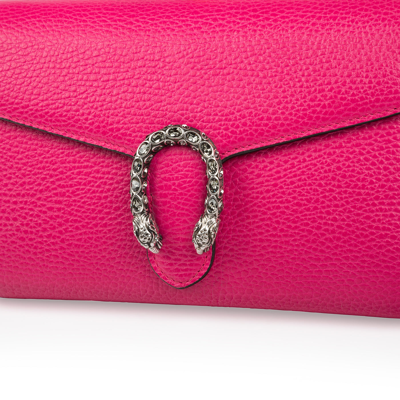 Gucci’s revelled Dionysus collection brings us the Dionysus leather mini chain bag. With its structured silhouette, astonishing pink textured leather and Swarovski crystal stones this mini bag captures the essence of its mythical origins. Gucci’s attention to detail is palpable in the hand-painted edges of the bag and in its immaculately hand-stitched details. The bag’s interior is lined in suede and features an array of spacious compartments; split into 3 distinctive areas allowing you to remain organised while on the go. Wear with a pair of complimentary heels and a bold-coloured dress to create a sultry evening-look that will leave others in awe.
