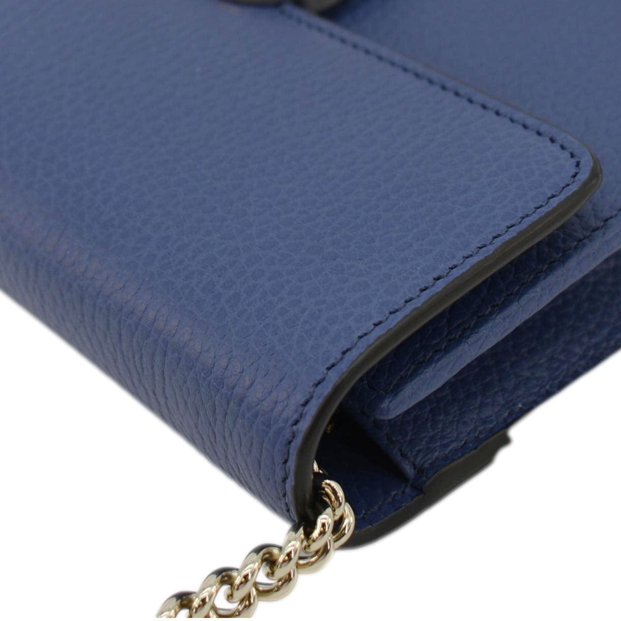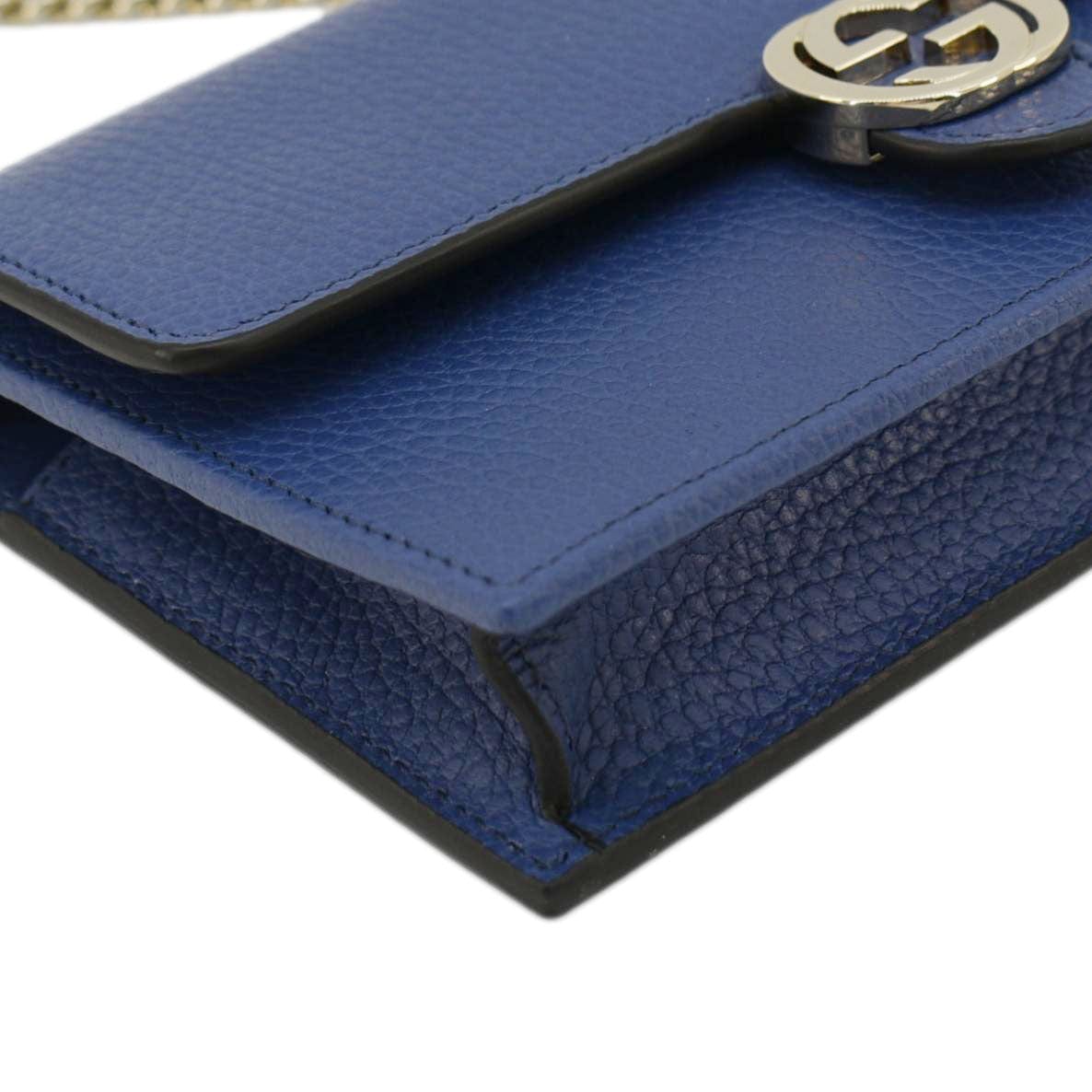 GUCCI Dollar Interlocking G Calfskin Leather Chain Wallet Crossbody Bag Blue 510314