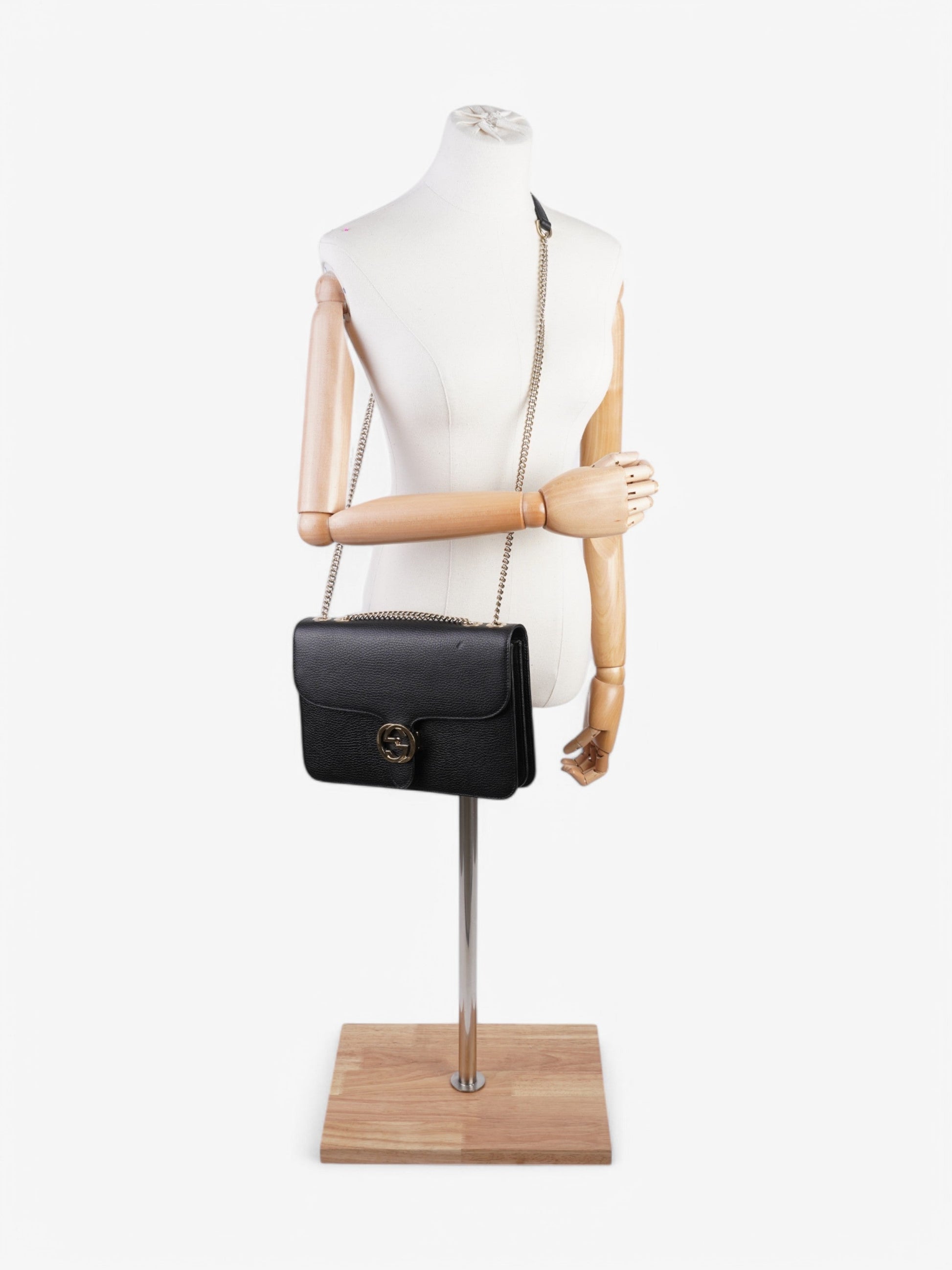Gucci Dollar Interlocking G Black Calfskin Leather Medium