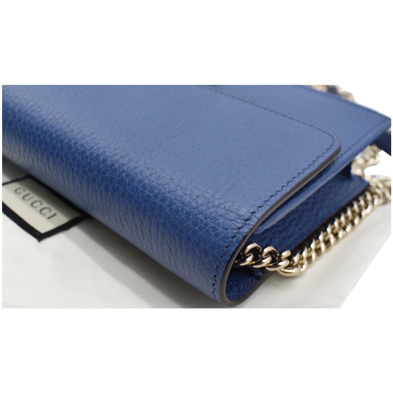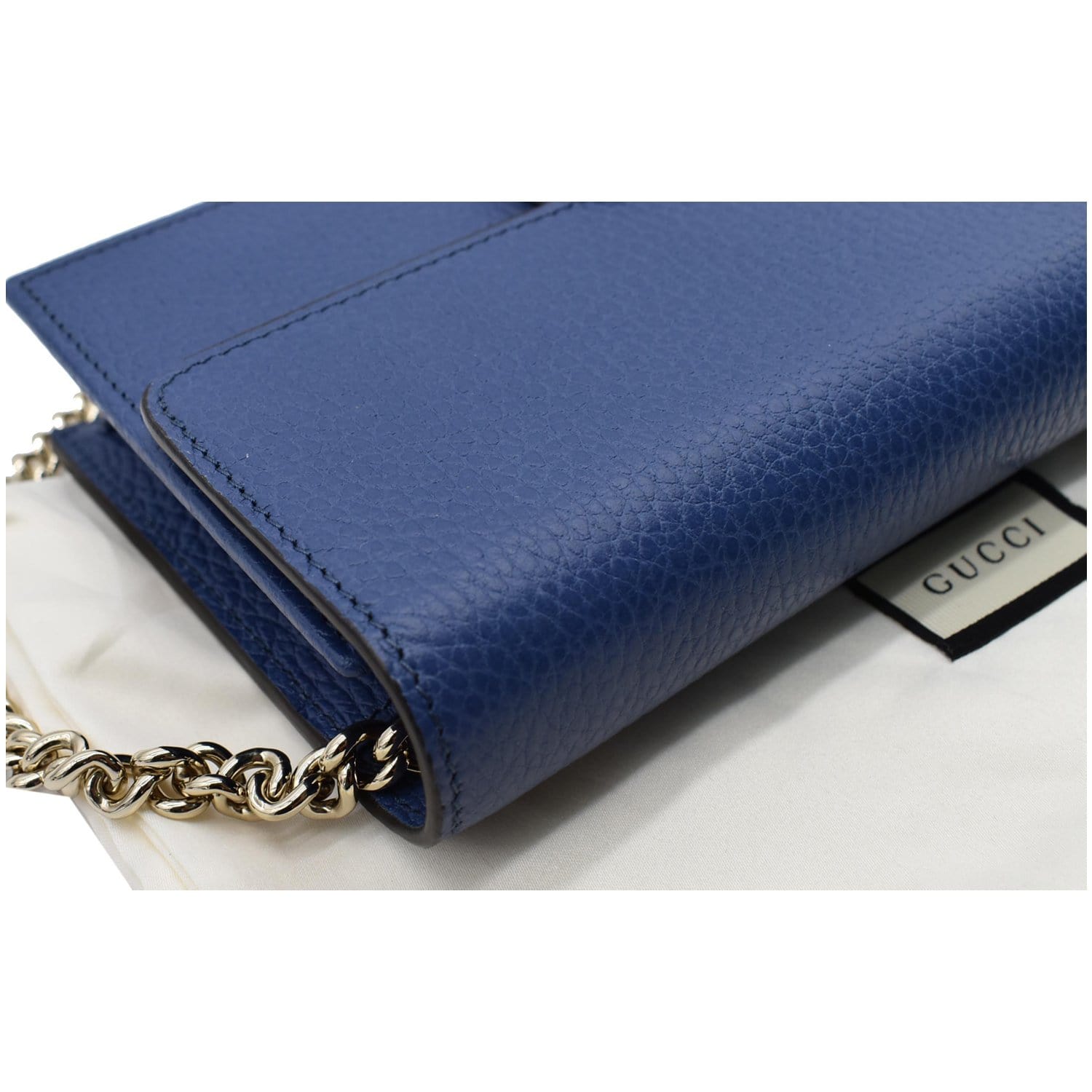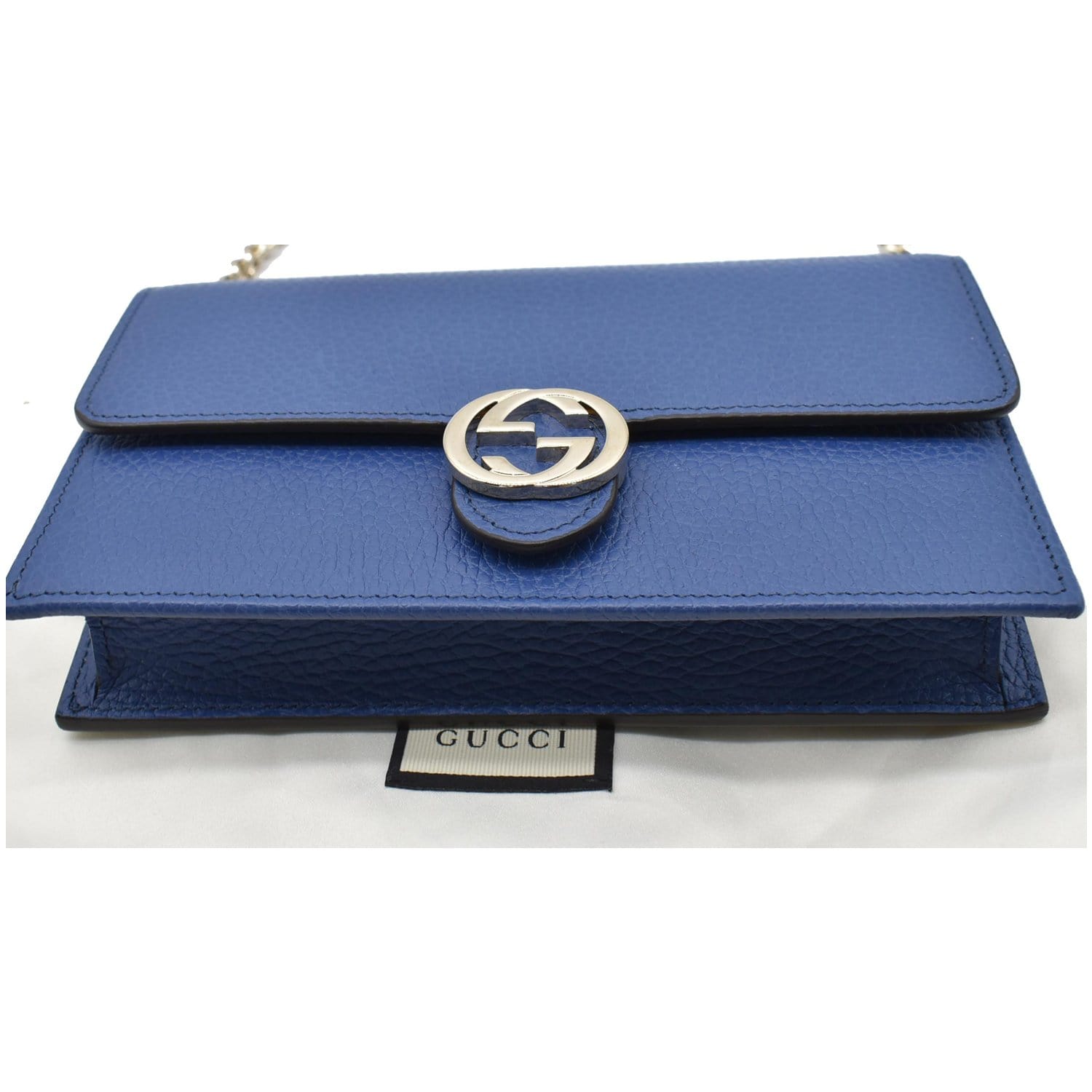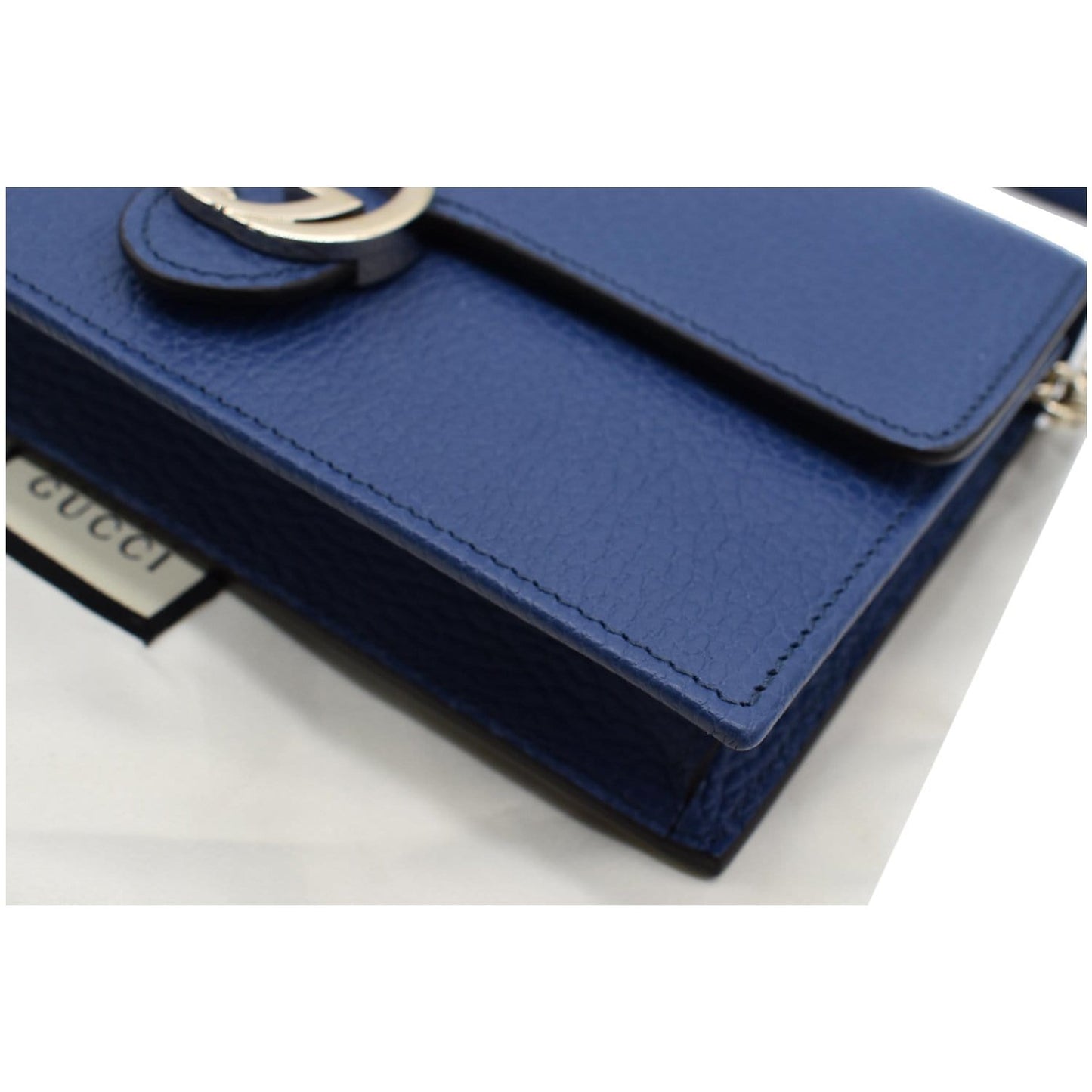 GUCCI Dollar Interlocking G Calfskin Leather Chain Wallet Crossbody Bag Blue 510314