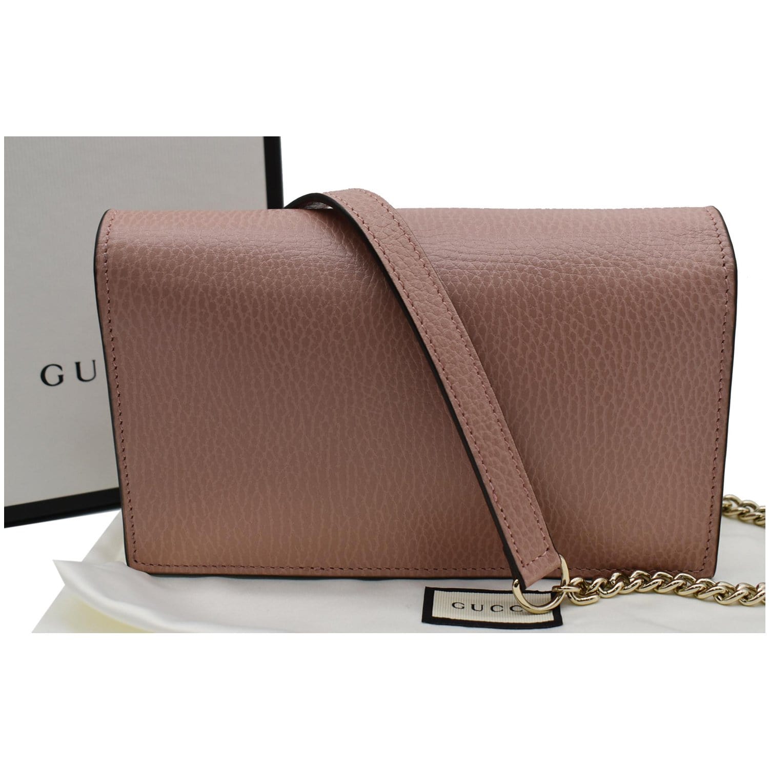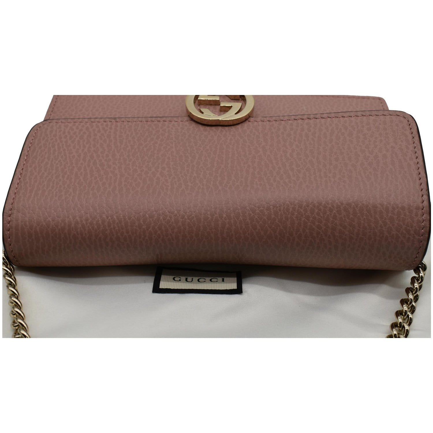 GUCCI Dollar Interlocking G Calfskin Leather Chain Wallet Crossbody Bag Soft Pink 510314