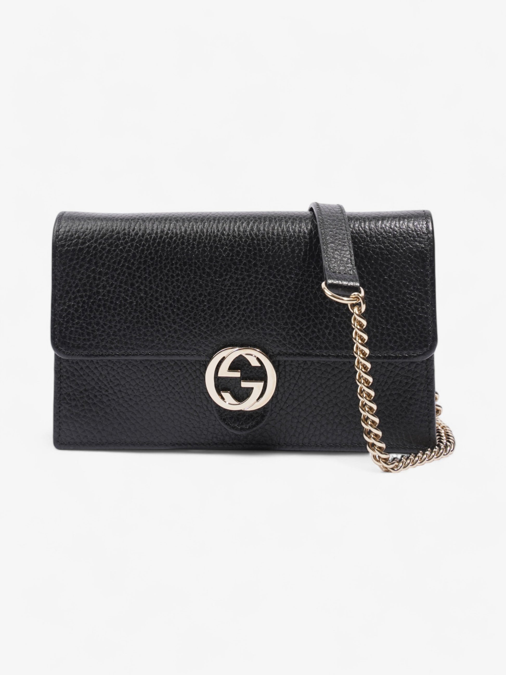 Gucci Dollar Interlocking G Chain Wallet Black Calfskin Leather