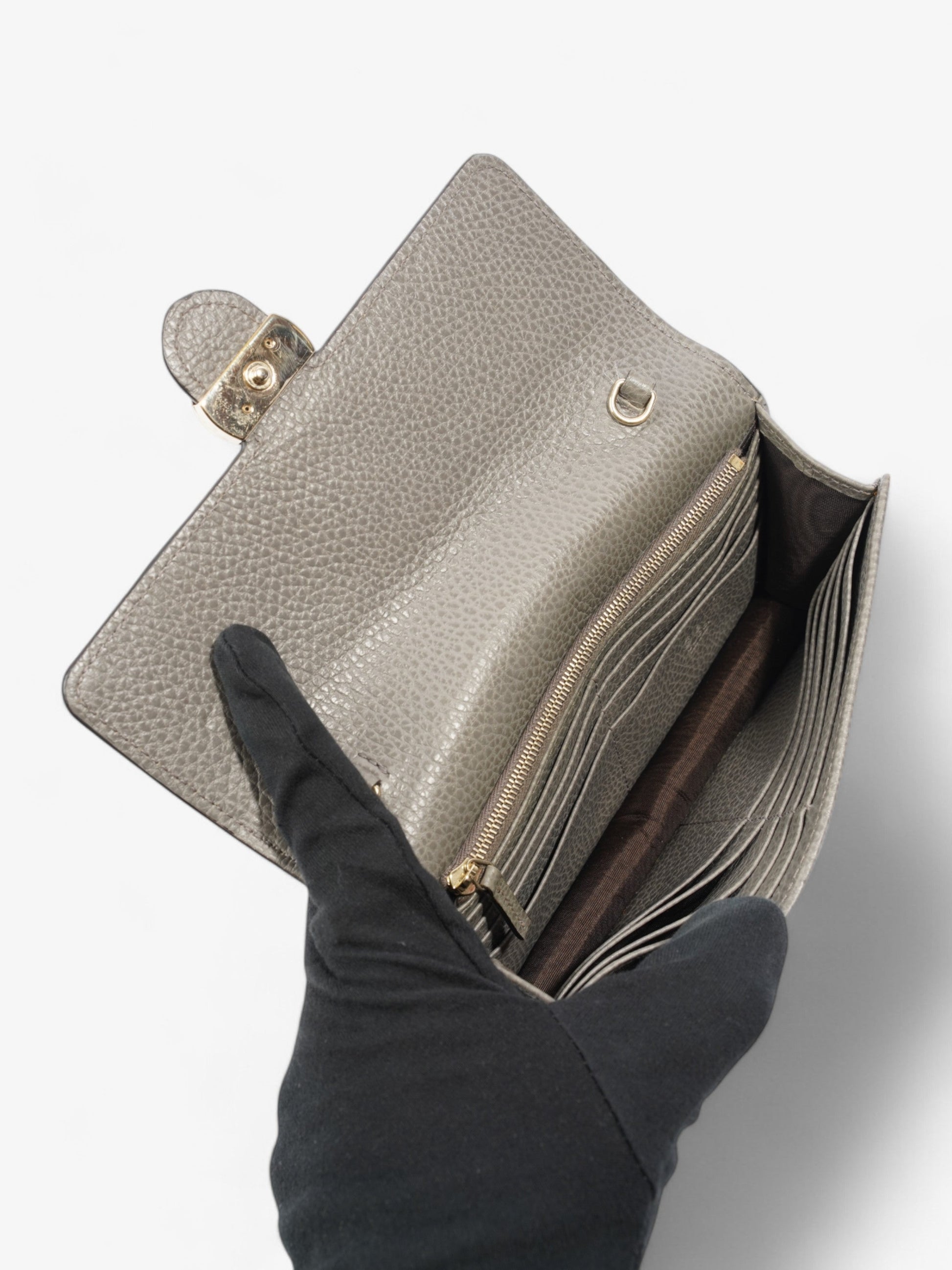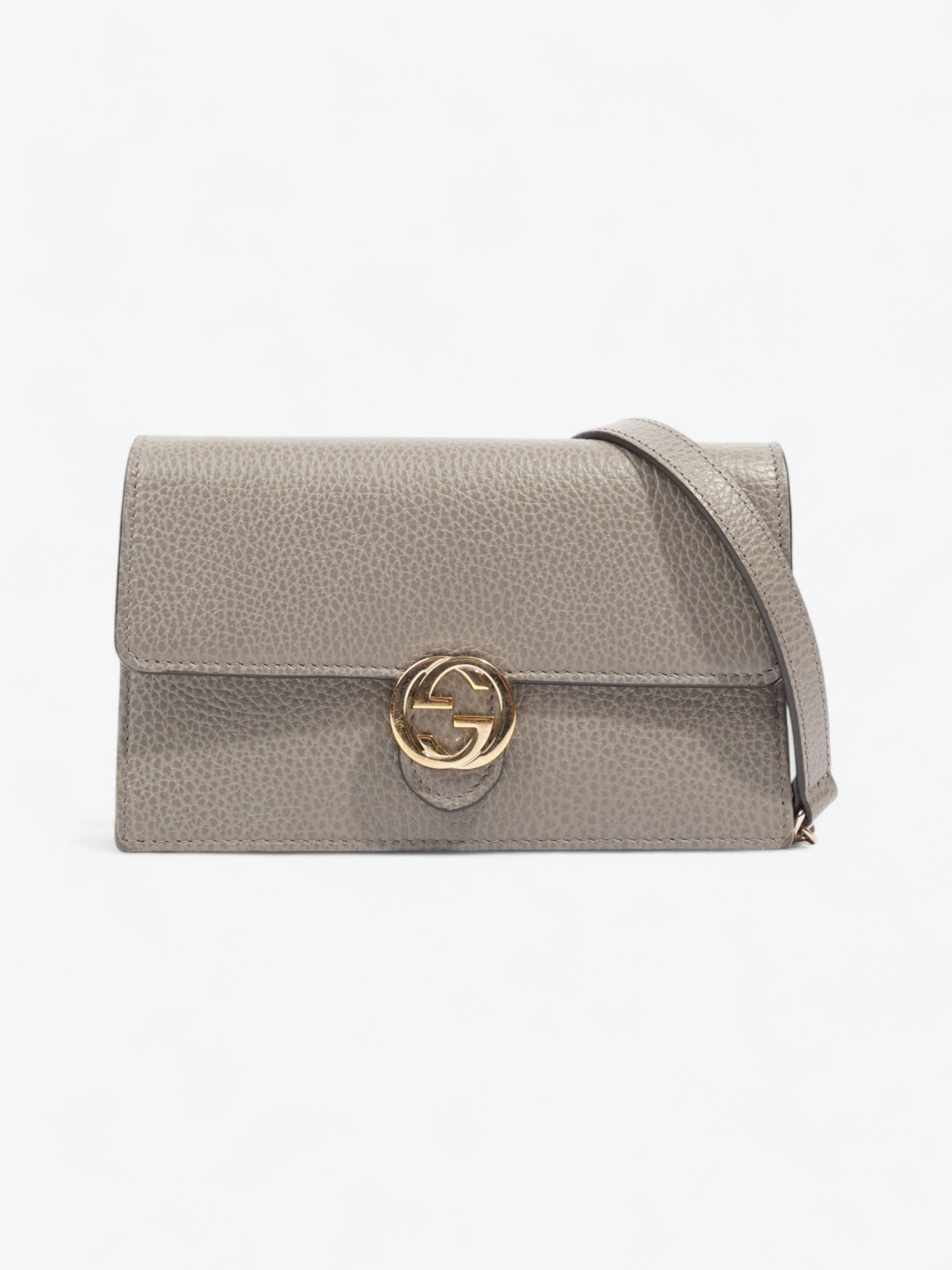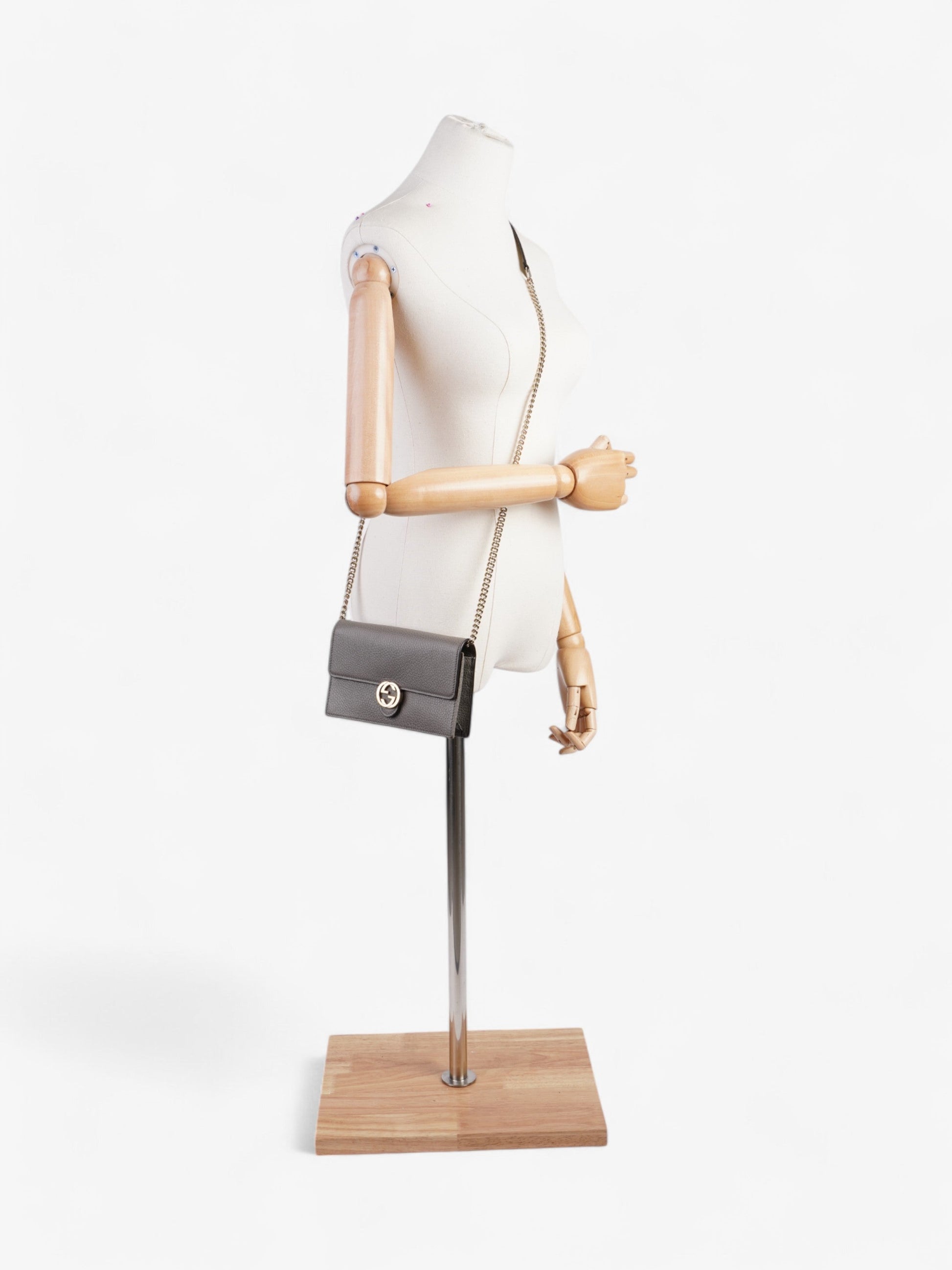 Gucci Dollar Interlocking G Chain Wallet Grey Calfskin Leather