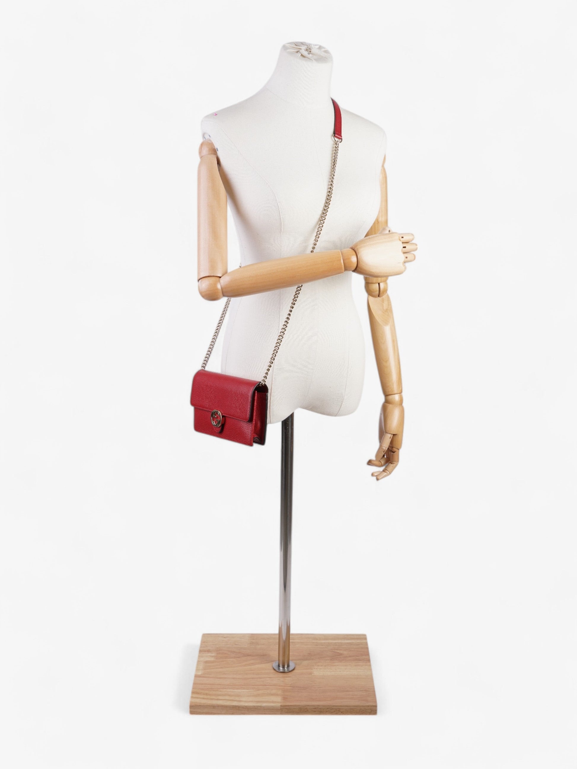 Gucci Dollar Interlocking G Chain Wallet Red Calfskin Leather