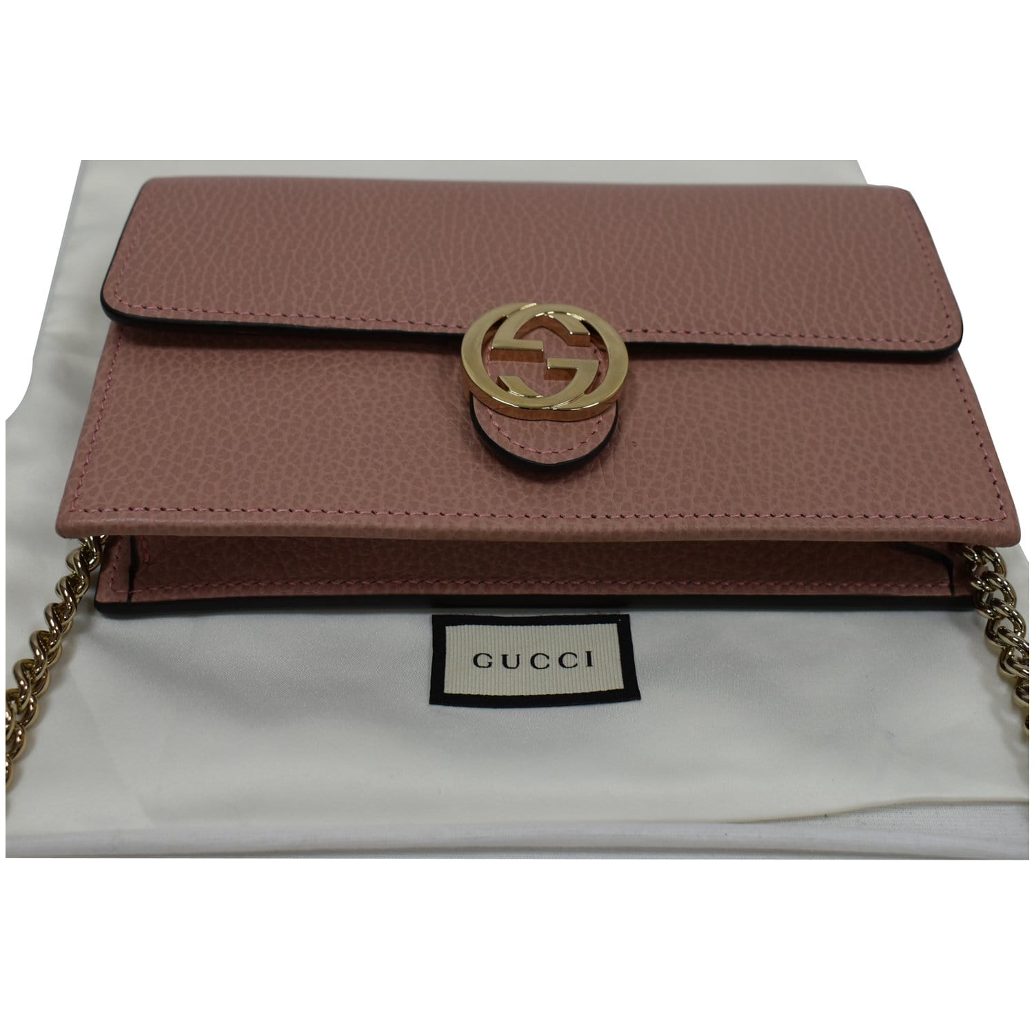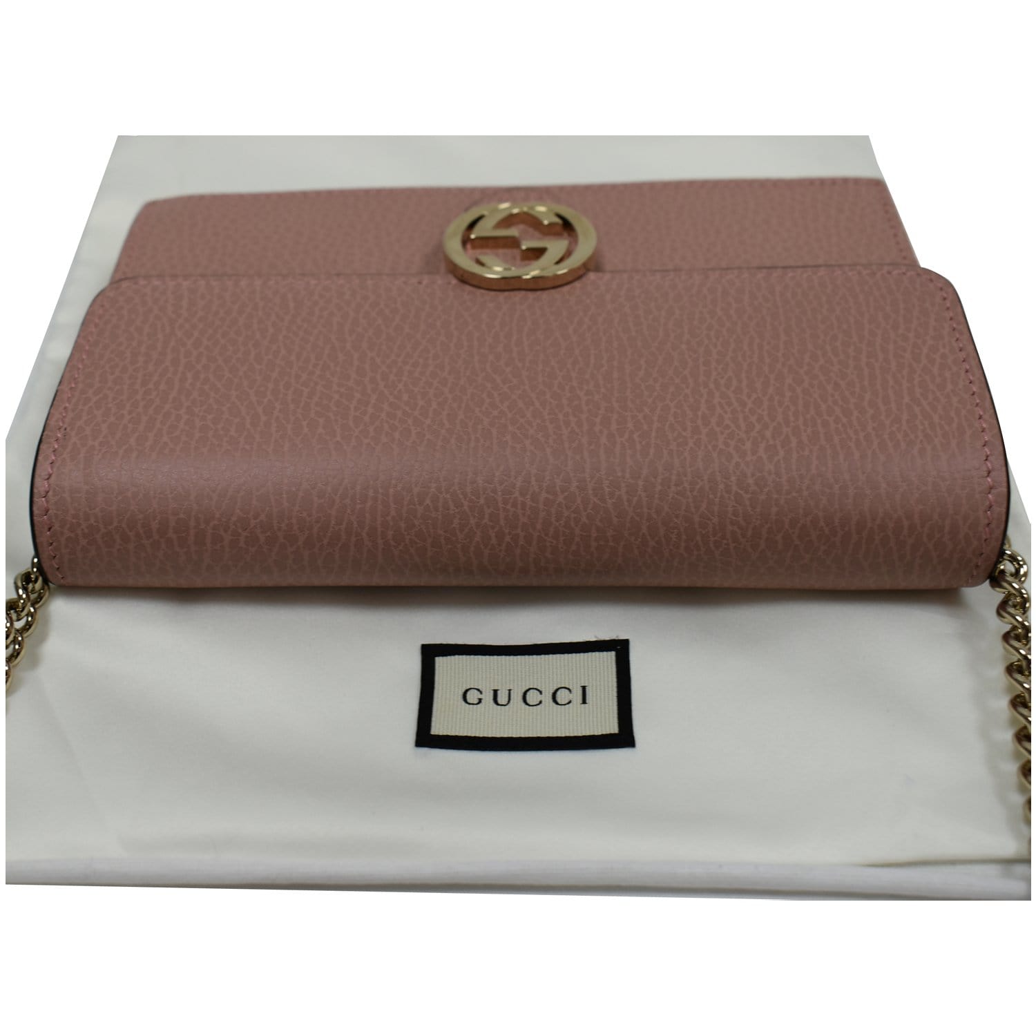 GUCCI Dollar Interlocking G Leather Chain Wallet Soft Pink 510314