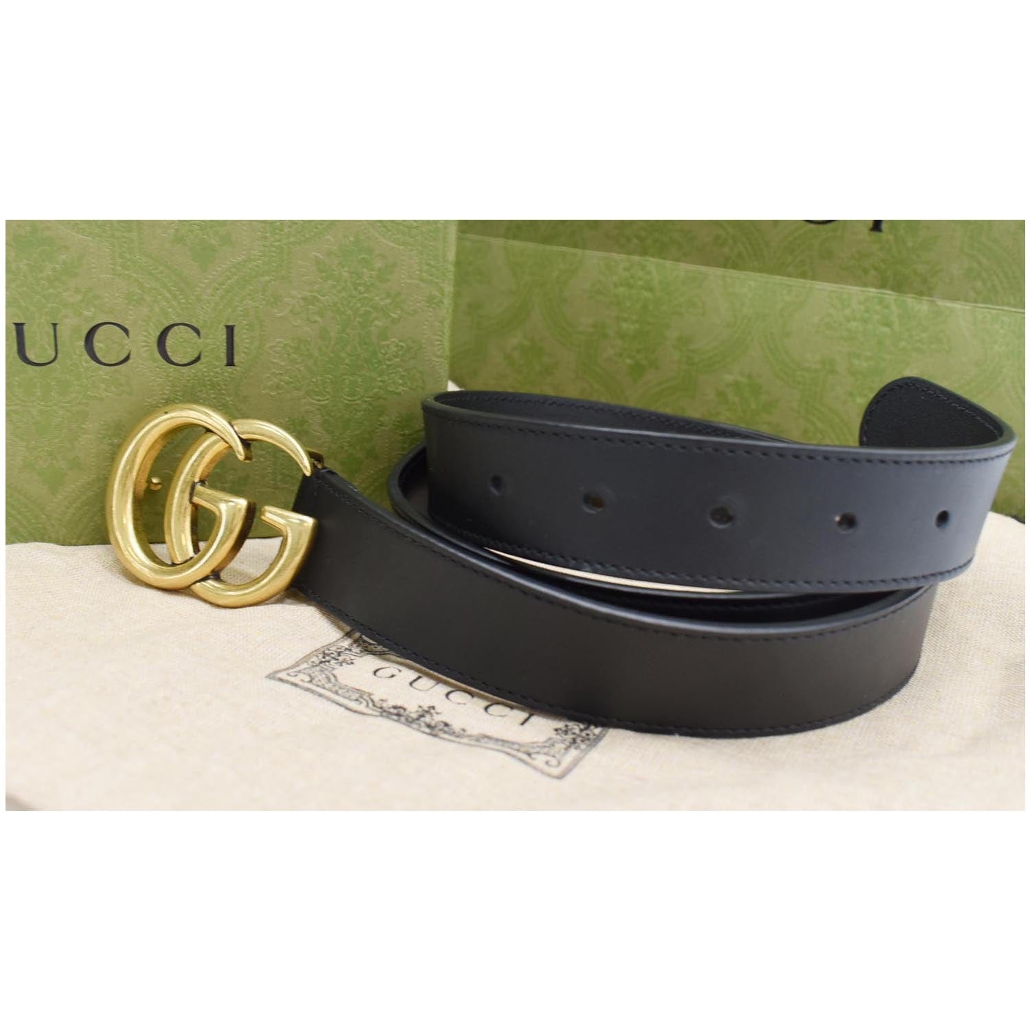 GUCCI Double G Buckle Leather Belt Black 414516