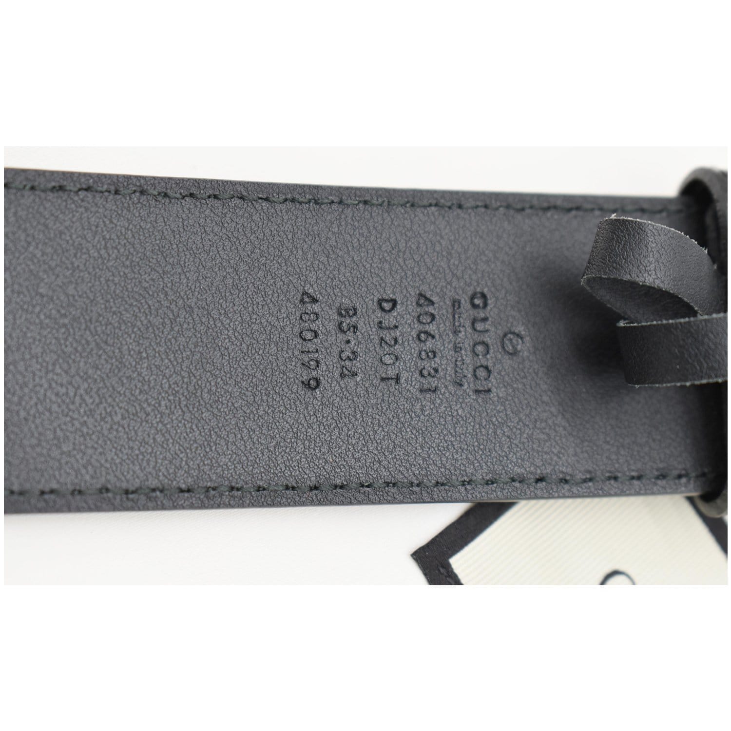 GUCCI Double G Buckle Textured Leather Belt Black 406831 Size 85.34