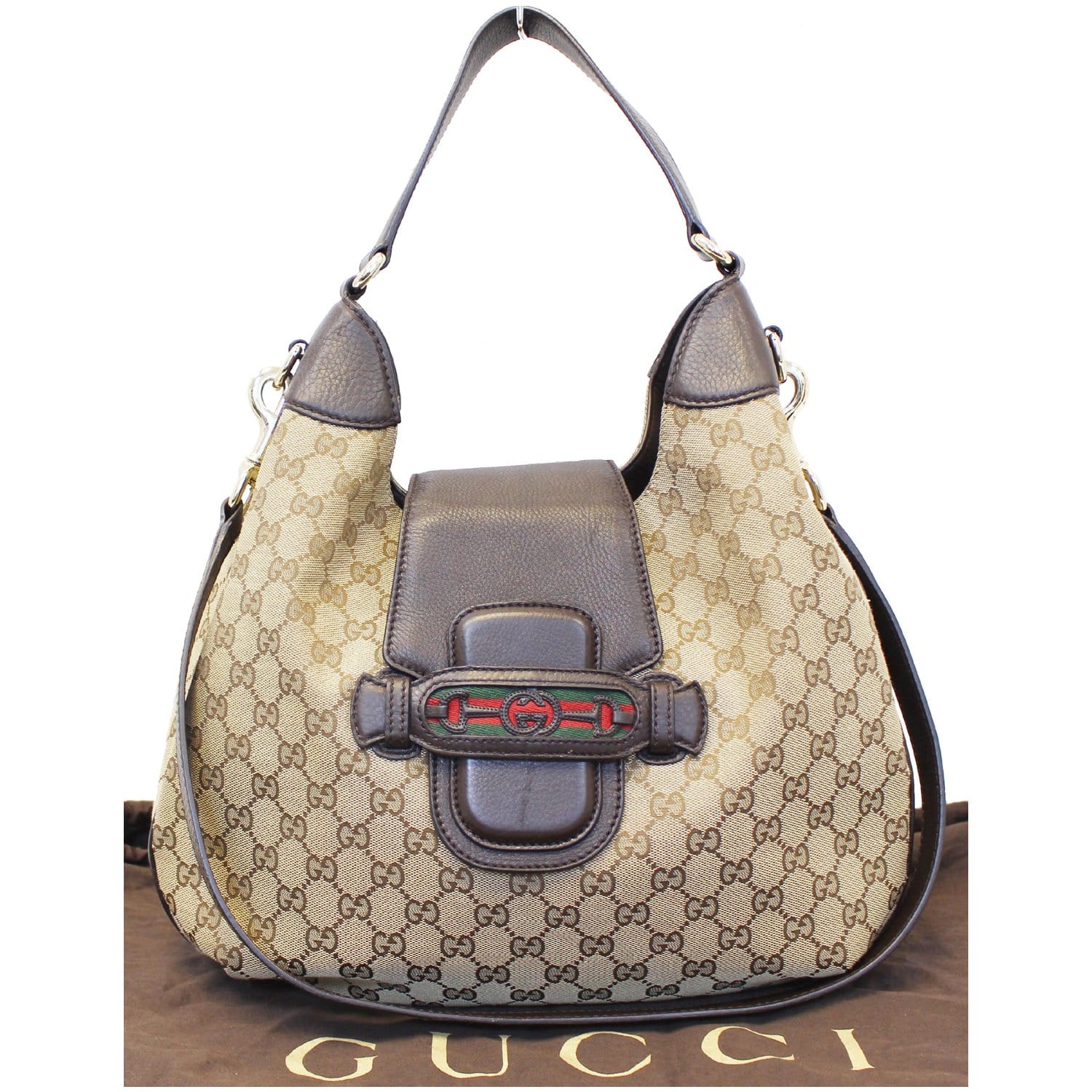 GUCCI Dressage Monogram Web Hobo Bag Dark Brown