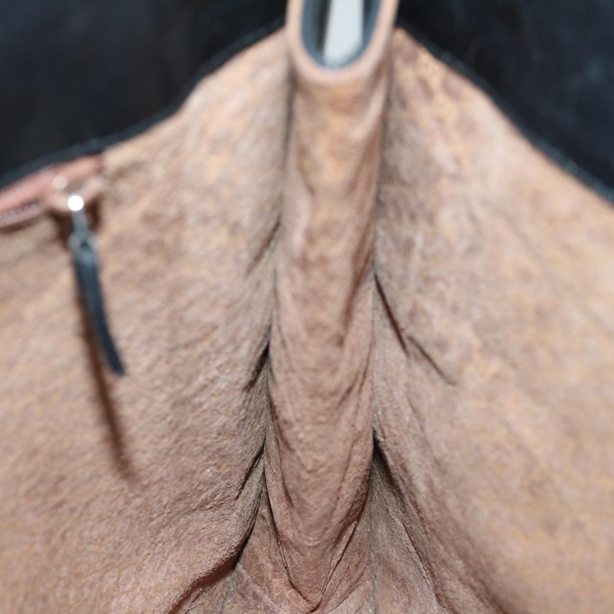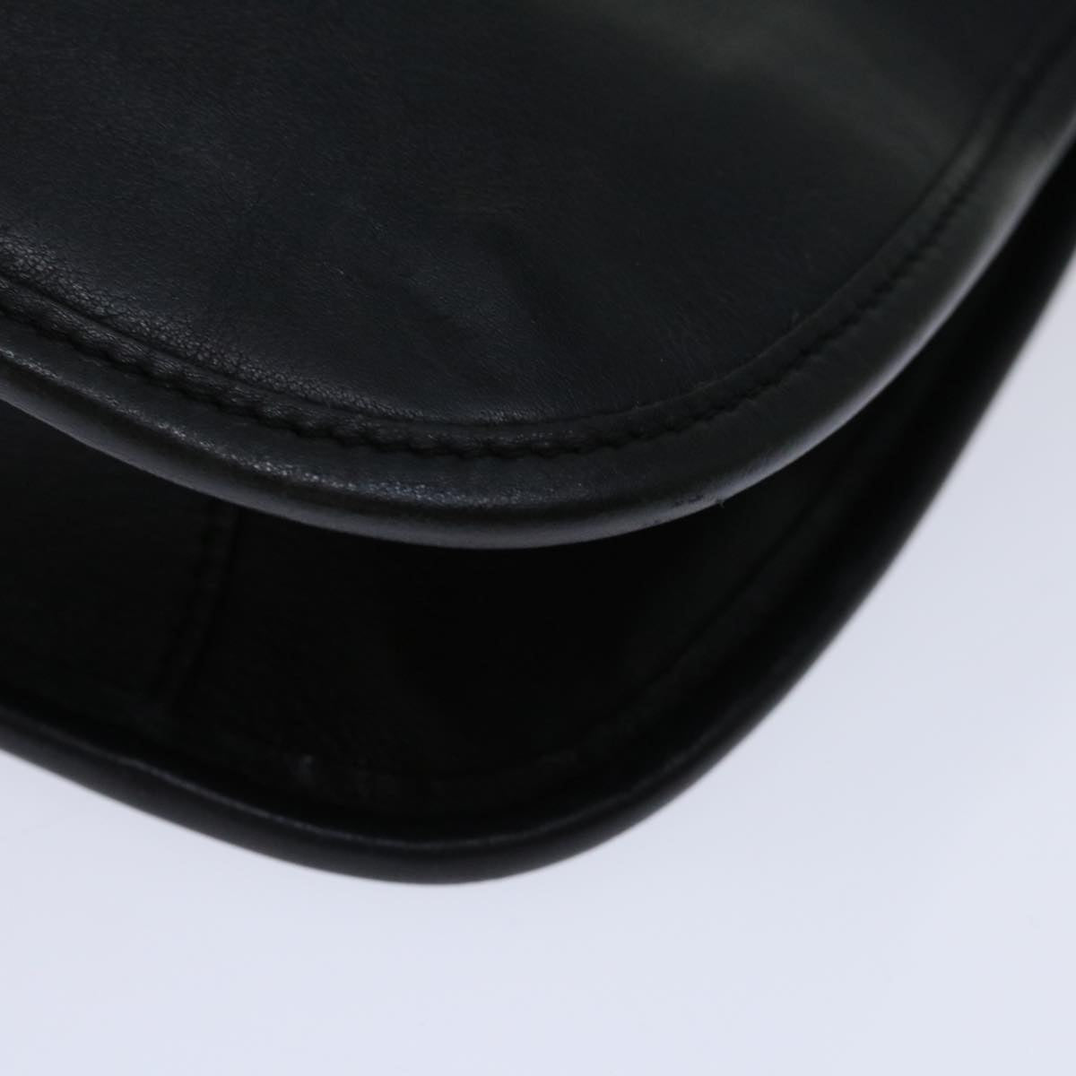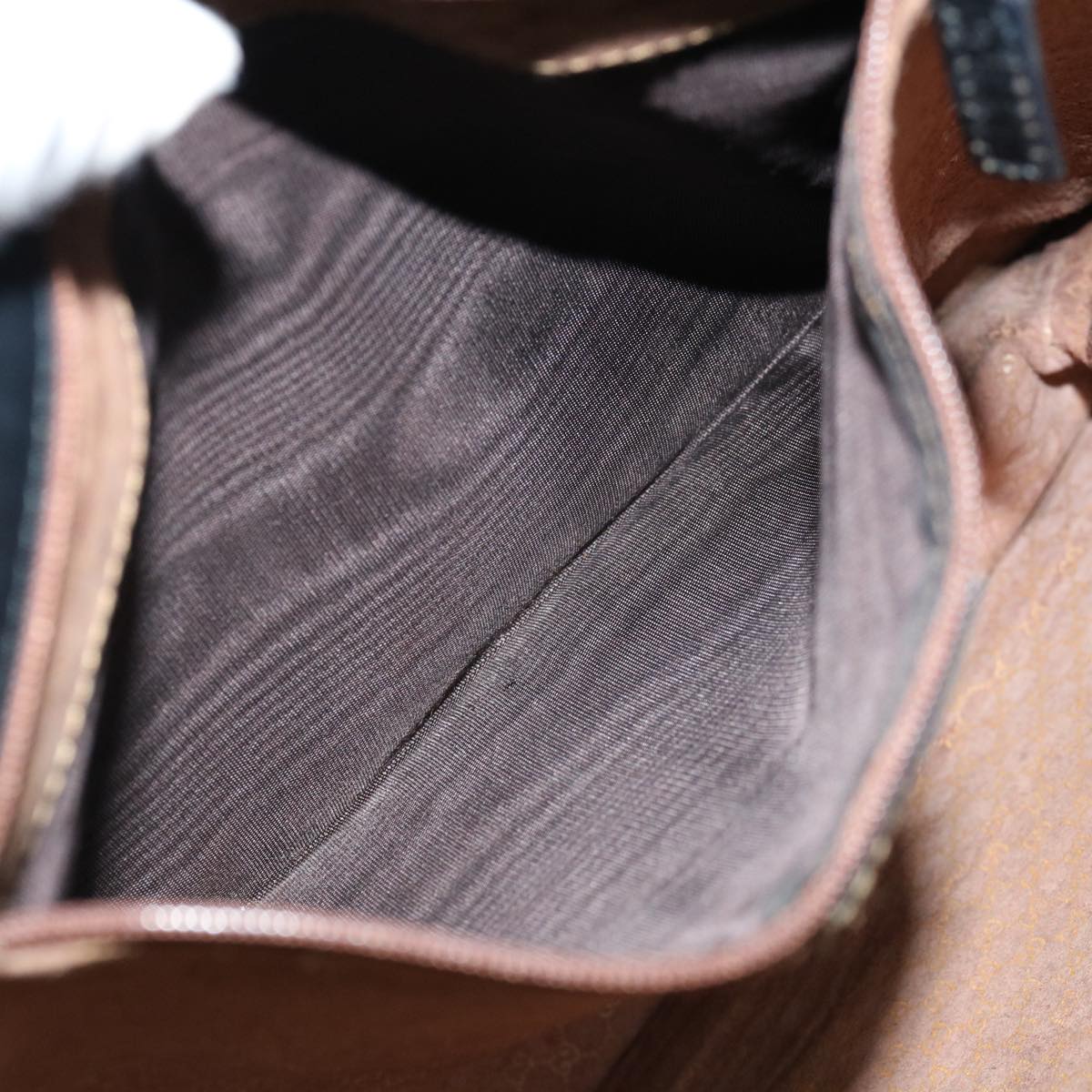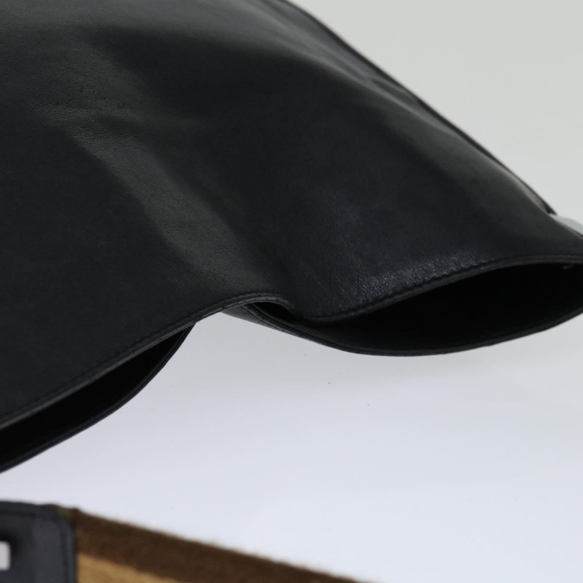The exterior of the item has lost its shape and exhibits rubbing, while the shoulder strap also shows rubbing. There are slight scratches on the metal fittings, and inside, there is rubbing along with a stain. Additionally, rubbing is noticeable in the pockets and along the corners. Furthermore, there is a persistent storage odor present within the item.