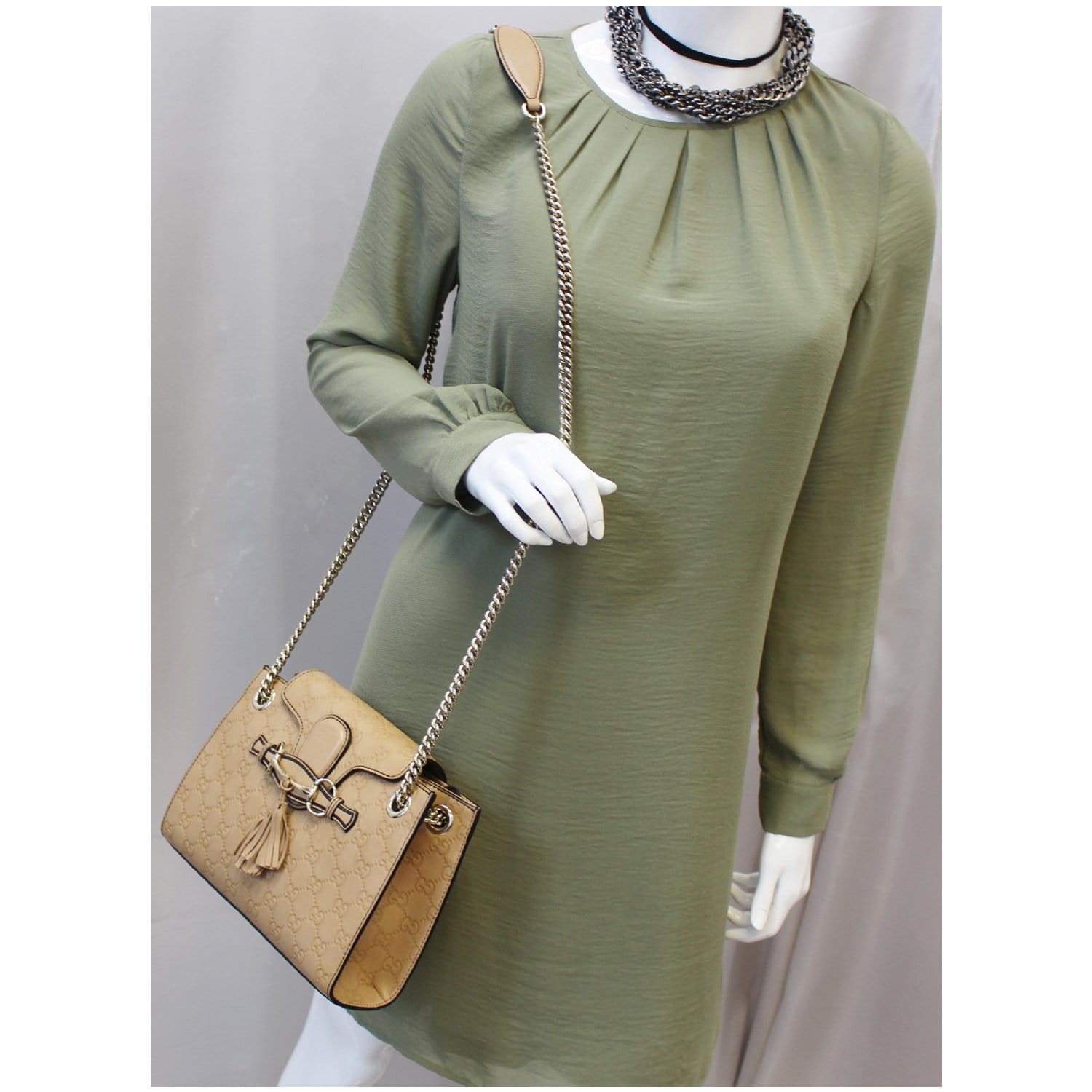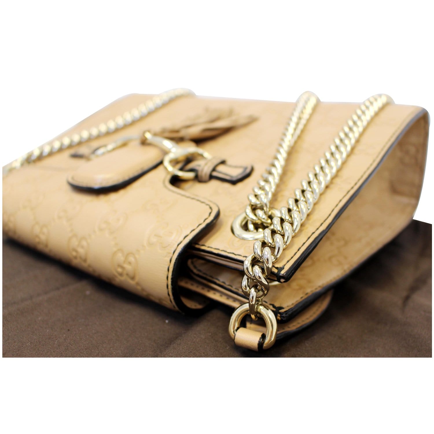 GUCCI Emily Guccissima Leather Chain Shoulder Bag Rose Beige 369621