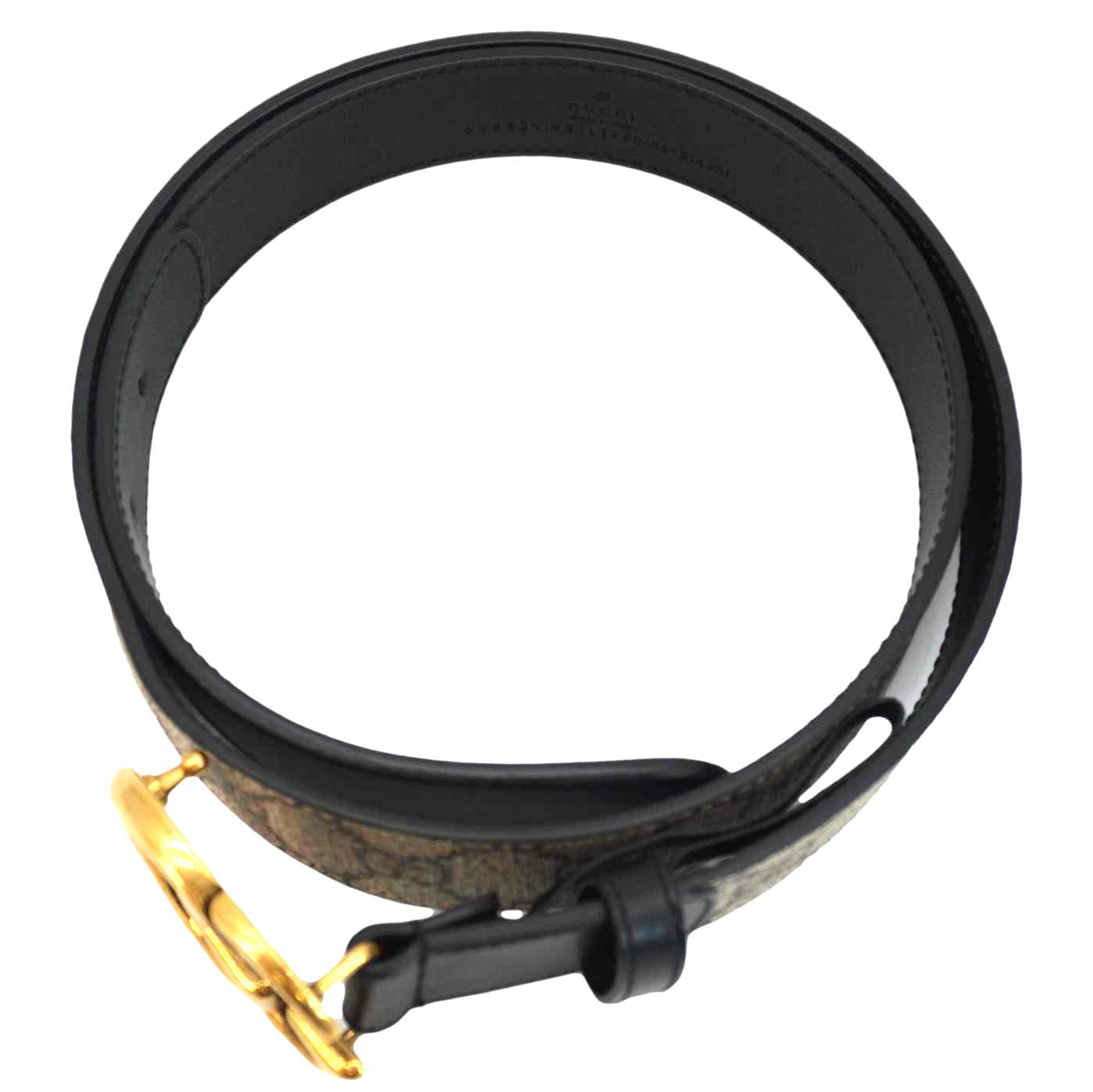 GUCCI Double G Buckle GG Supreme Leather Belt Beige 625839 Size 90.36
