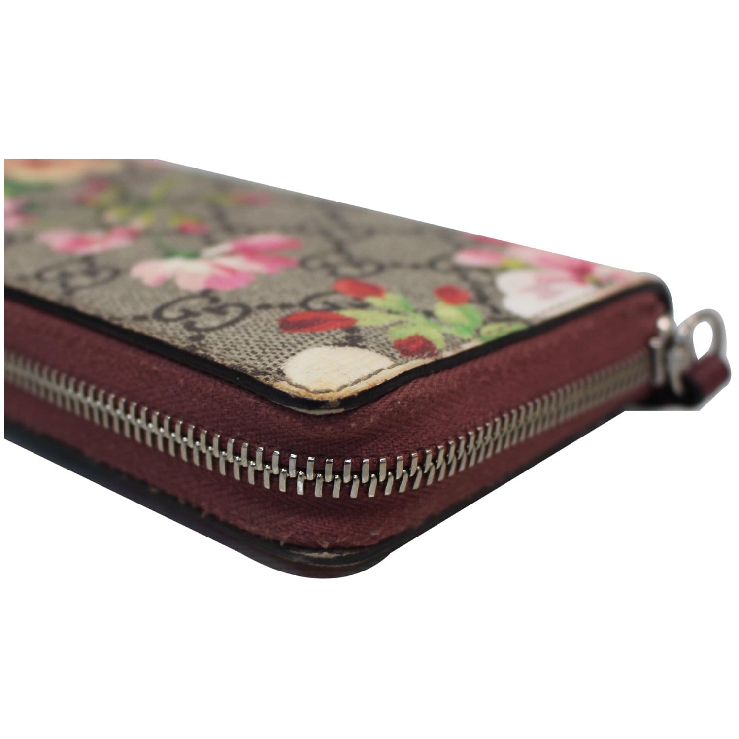 GUCCI GG Blooms Supreme Canvas Zip Around Wallet Beige/Ebony 404071