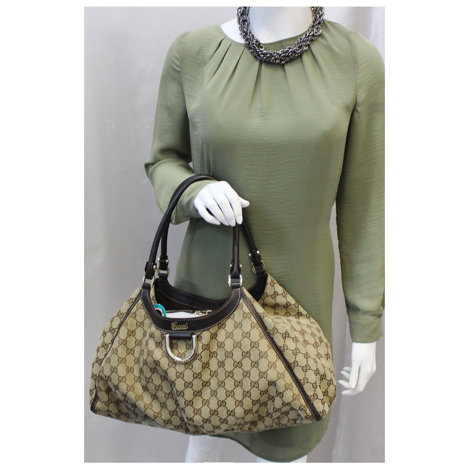 GUCCI GG Canvas D Ring Large Hobo Bag 189835