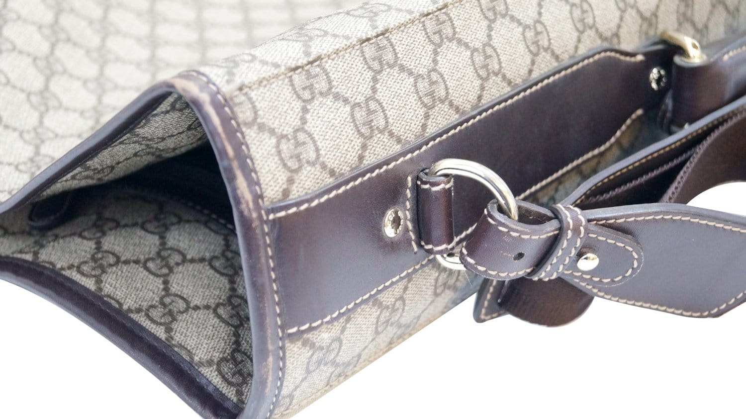 Leather: Dirt, rubbed, scratches, signs of use.