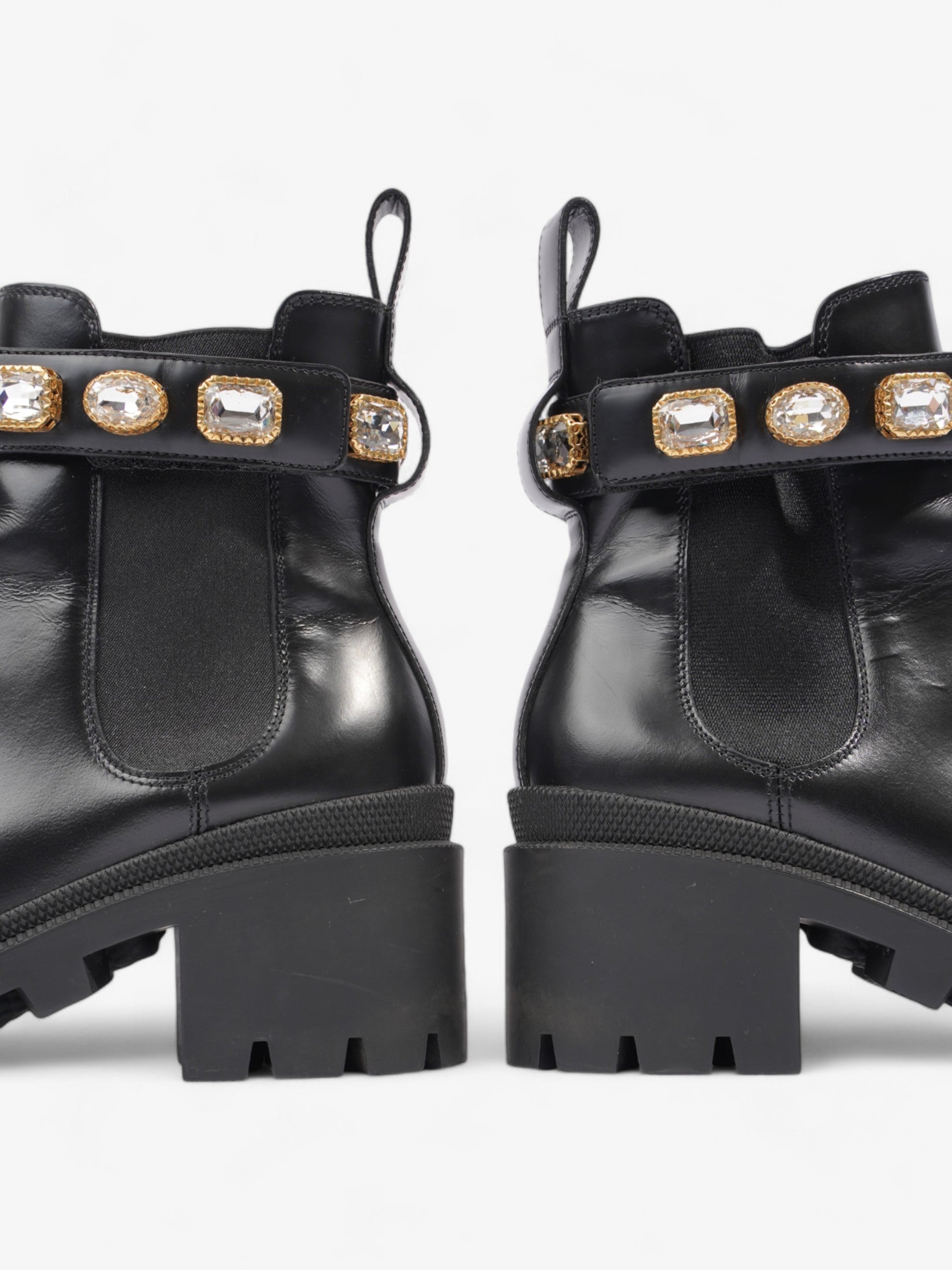Gucci GG Crystal Ankle Boots Black / Gold Leather EU 37.5 UK 4.5