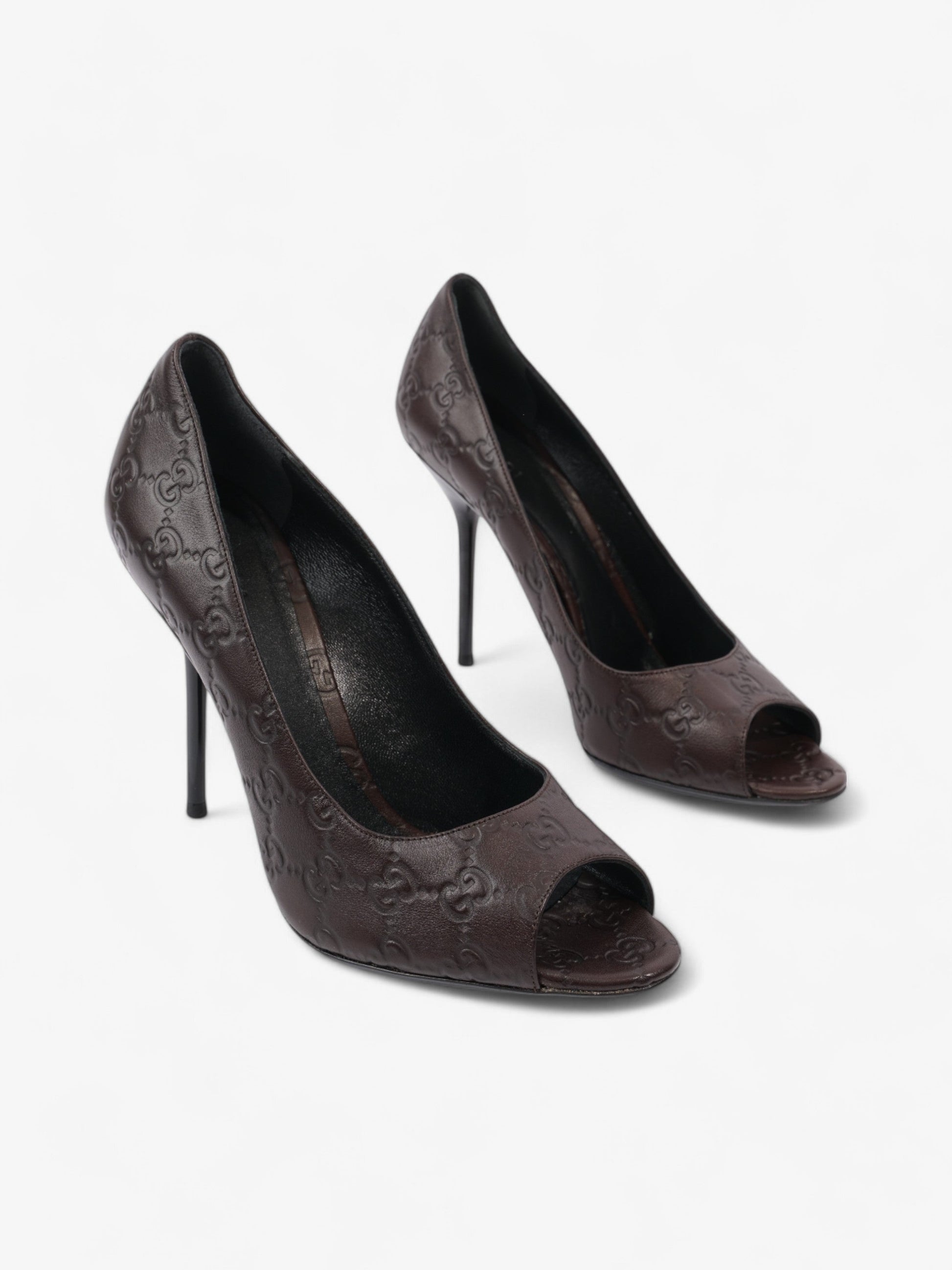 Gucci GG Embossed Heels 110 Brown Embossed Leather EU 41 UK 8