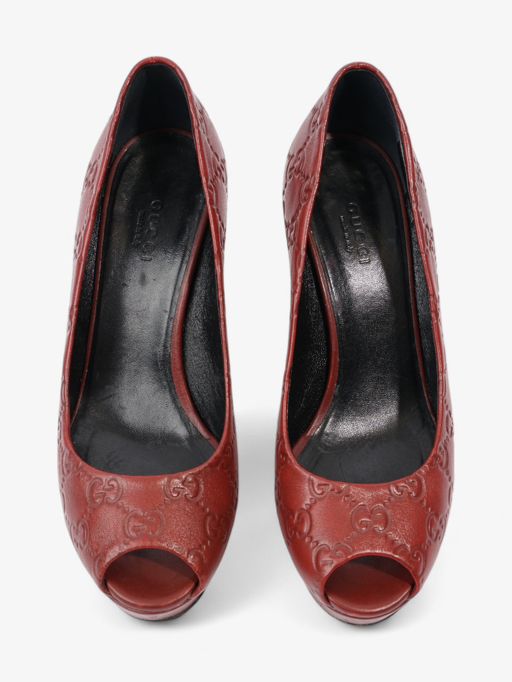 Gucci GG Embossed Heels Burgundy Embossed Leather EU 37 UK 4