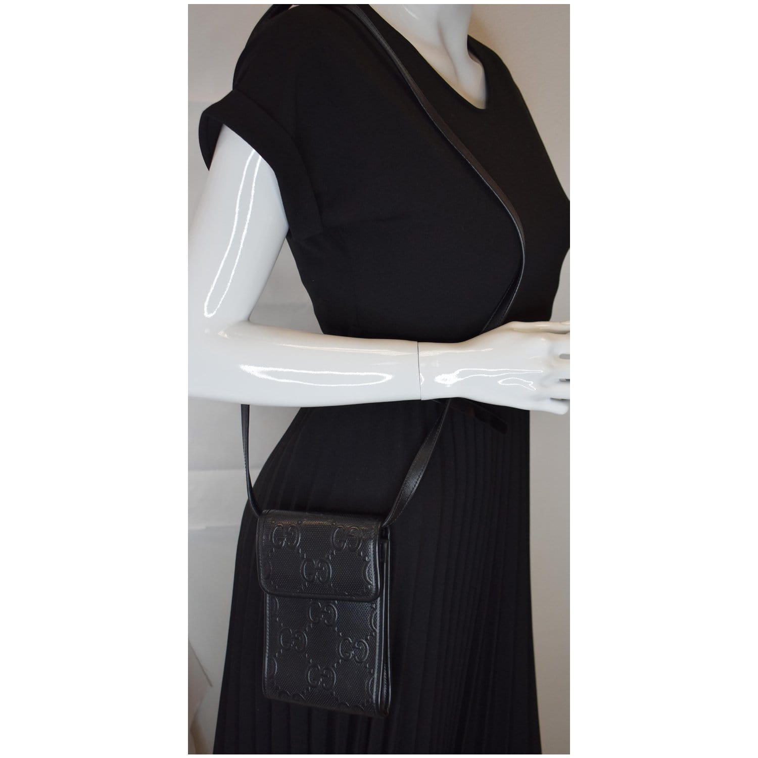 GUCCI GG Embossed Leather Mini Messenger Bag Black 625571