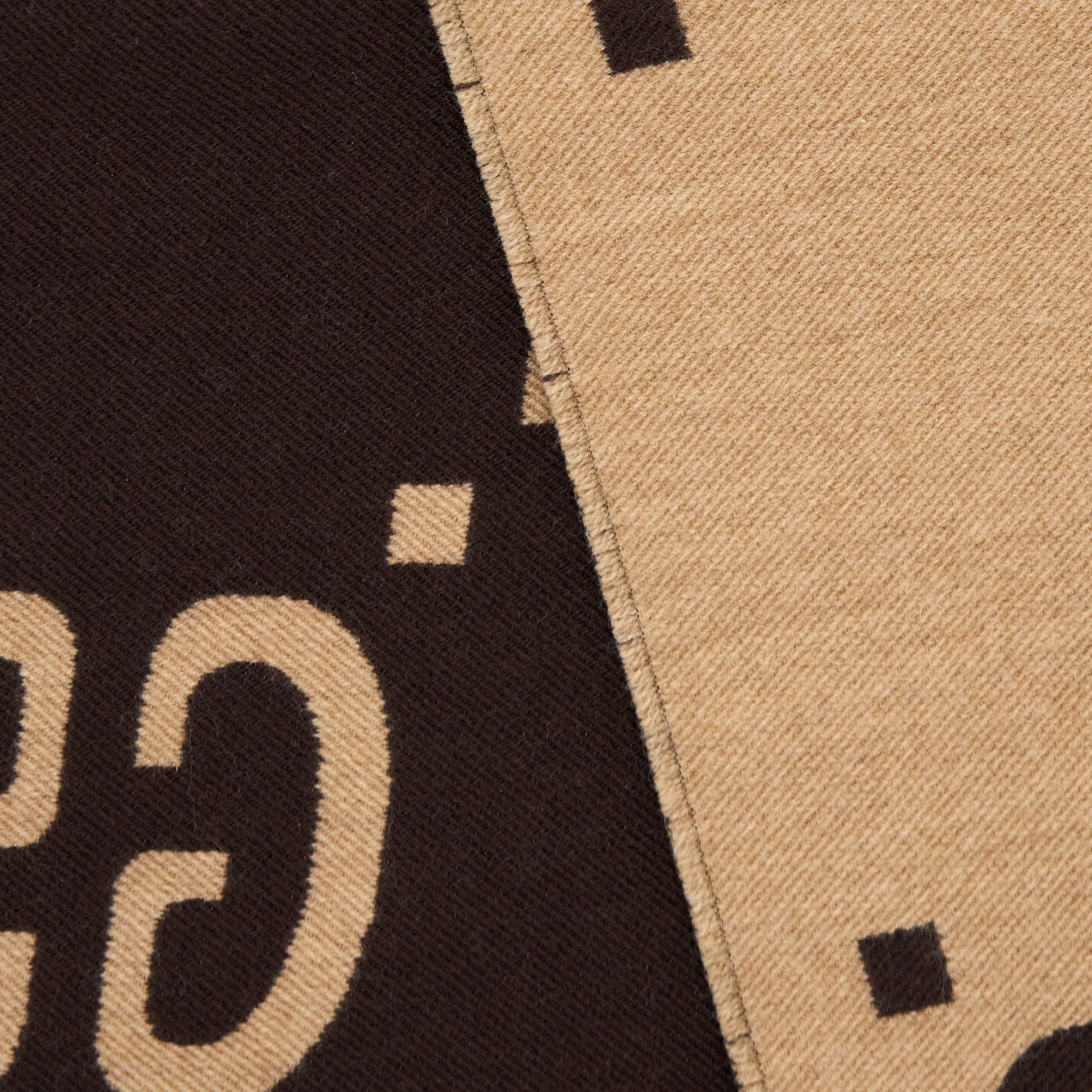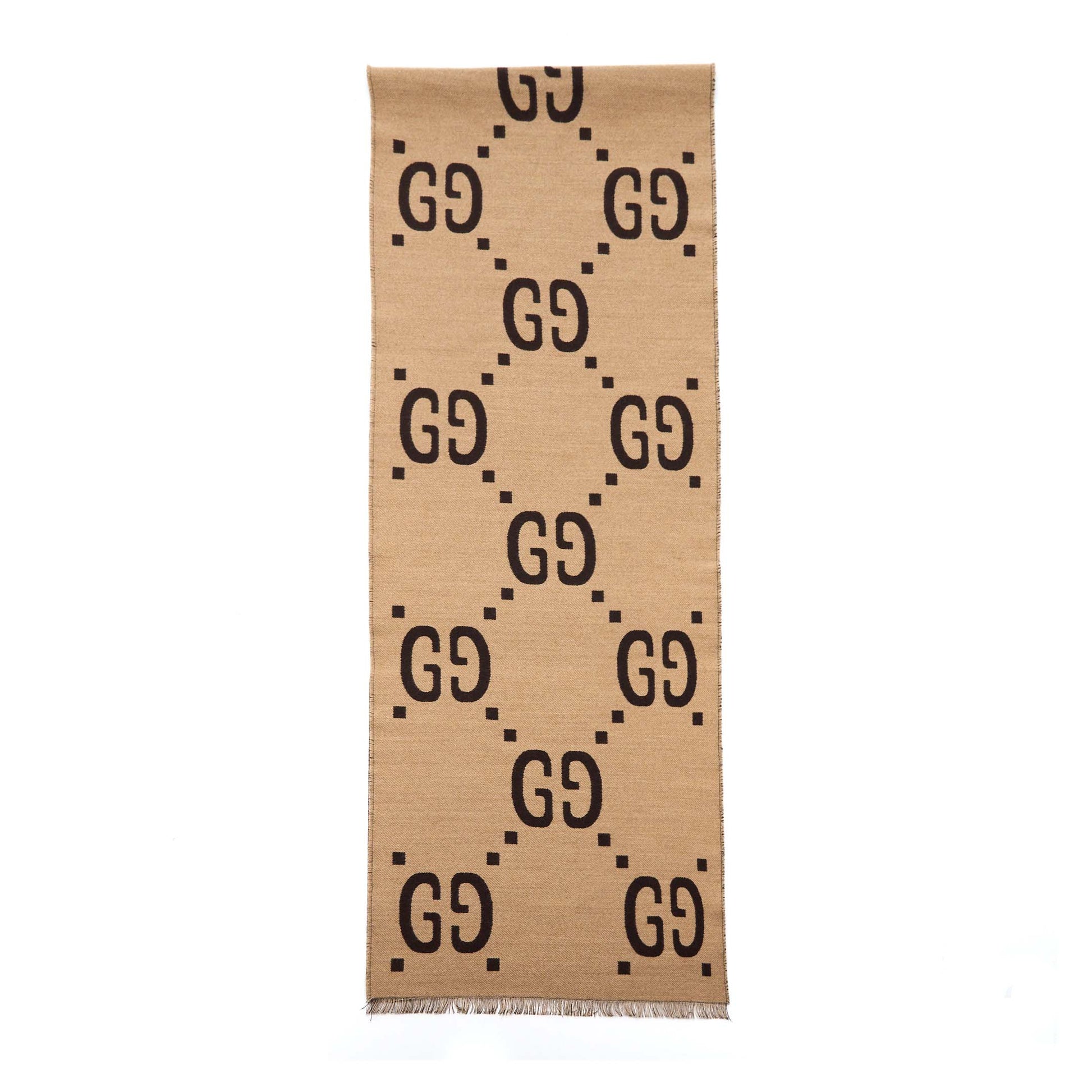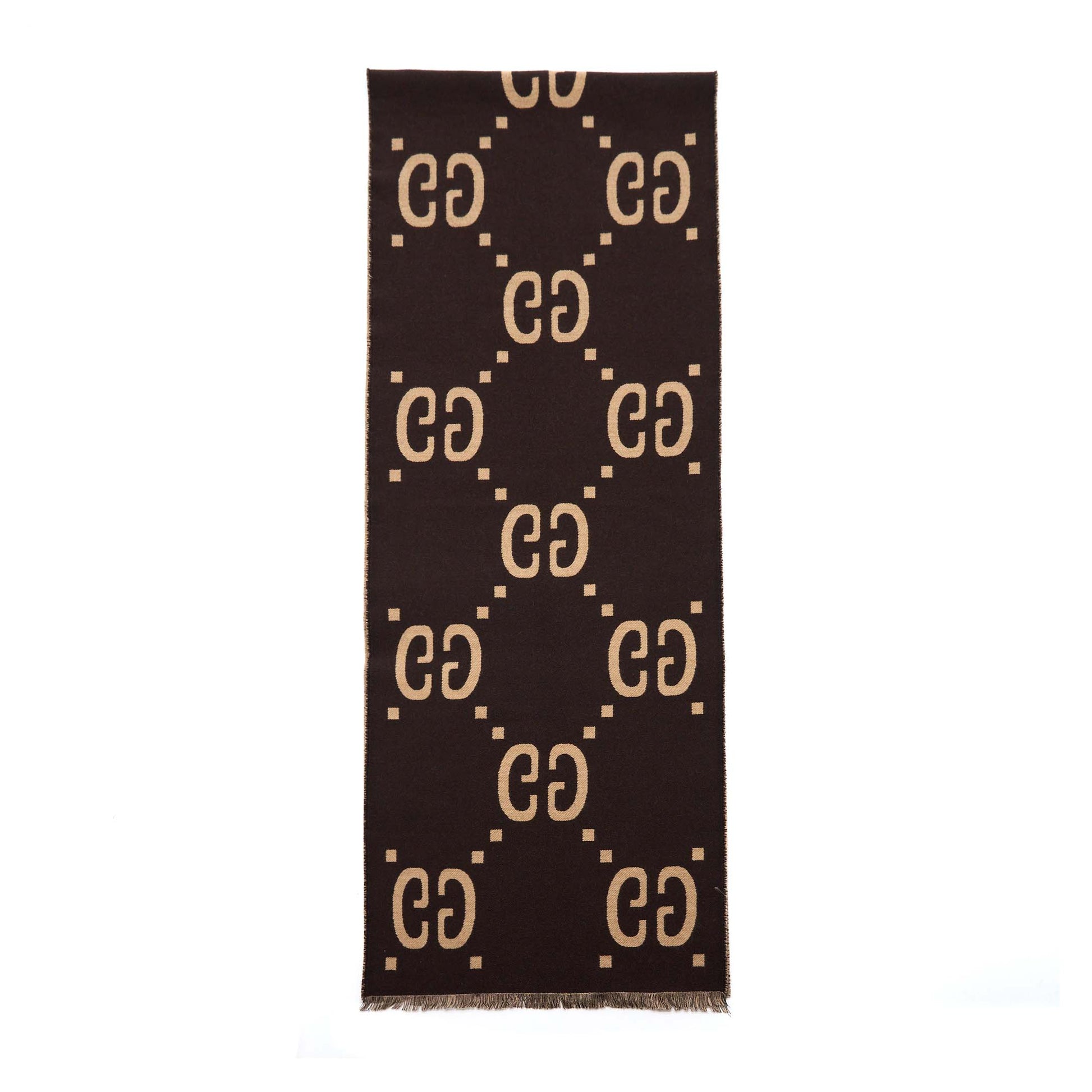 Gucci GG Jacquard Wool Silk Scarf Brown/Beige