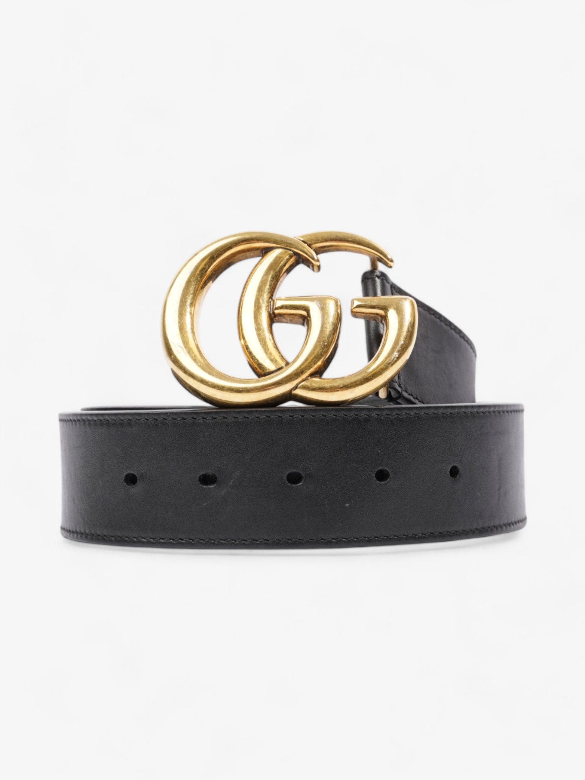 Gucci GG Marmont 2015 Re-Edition Wide Belt Black / Gold Leather 85cm / 34"