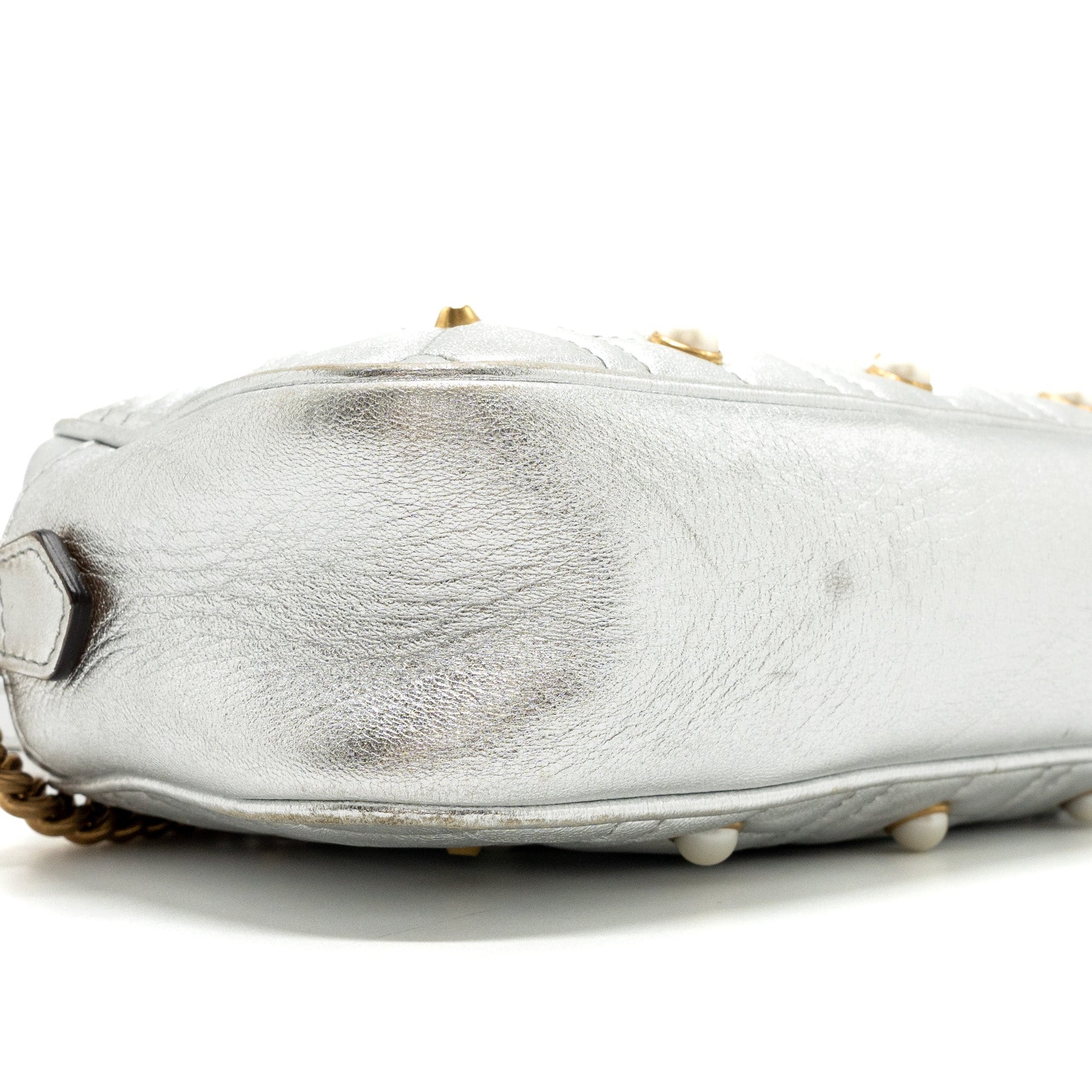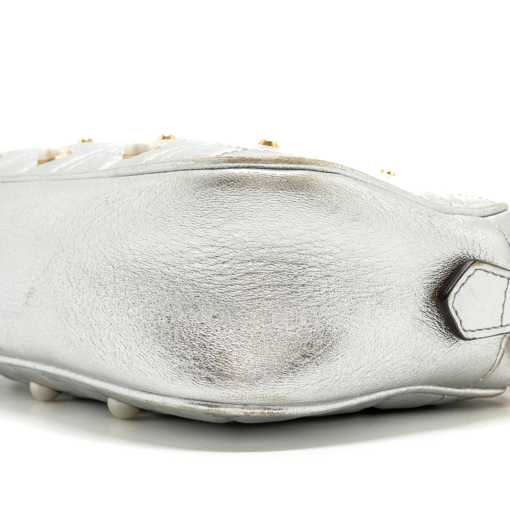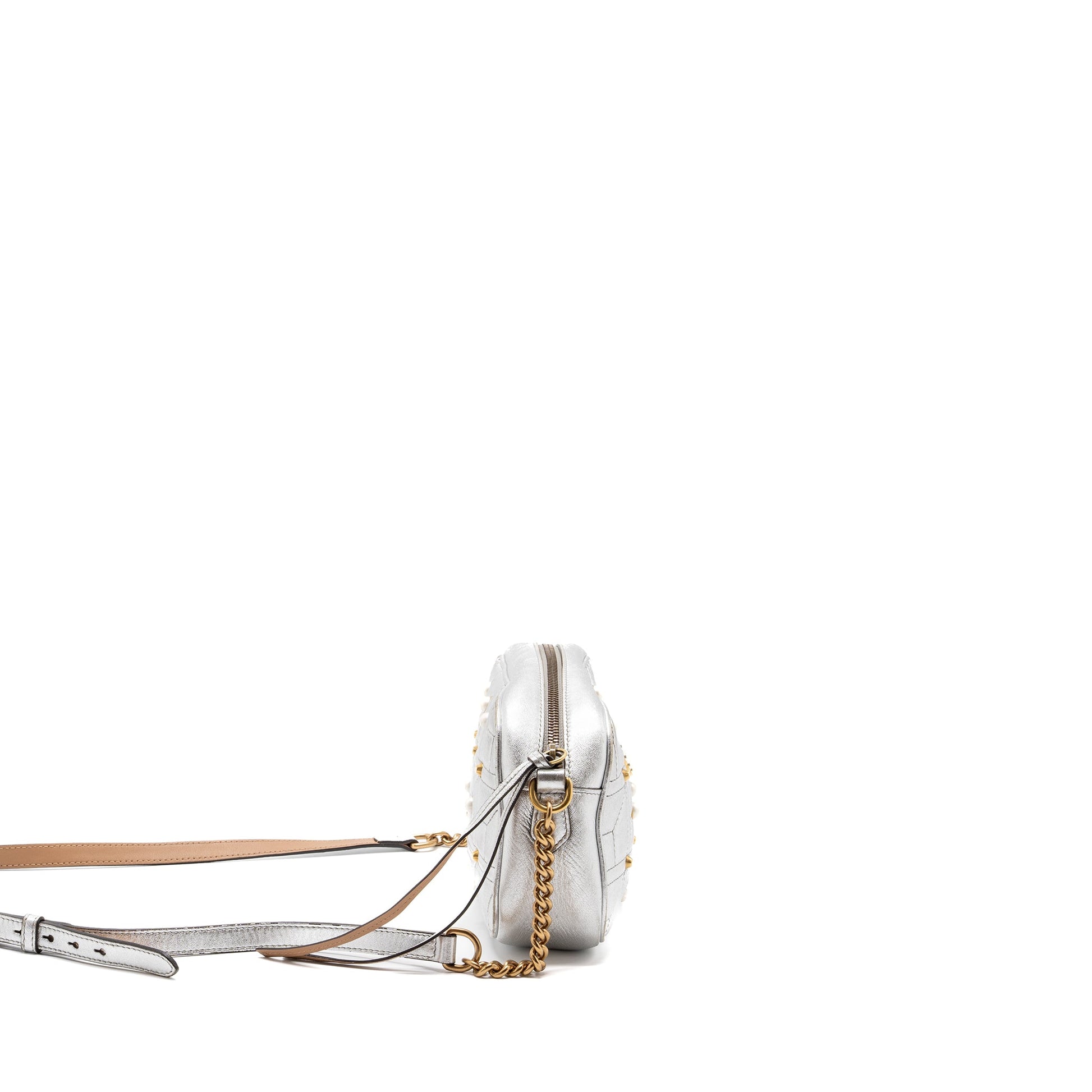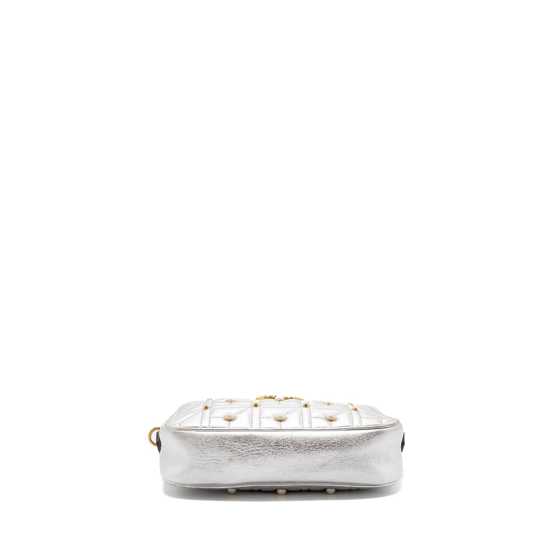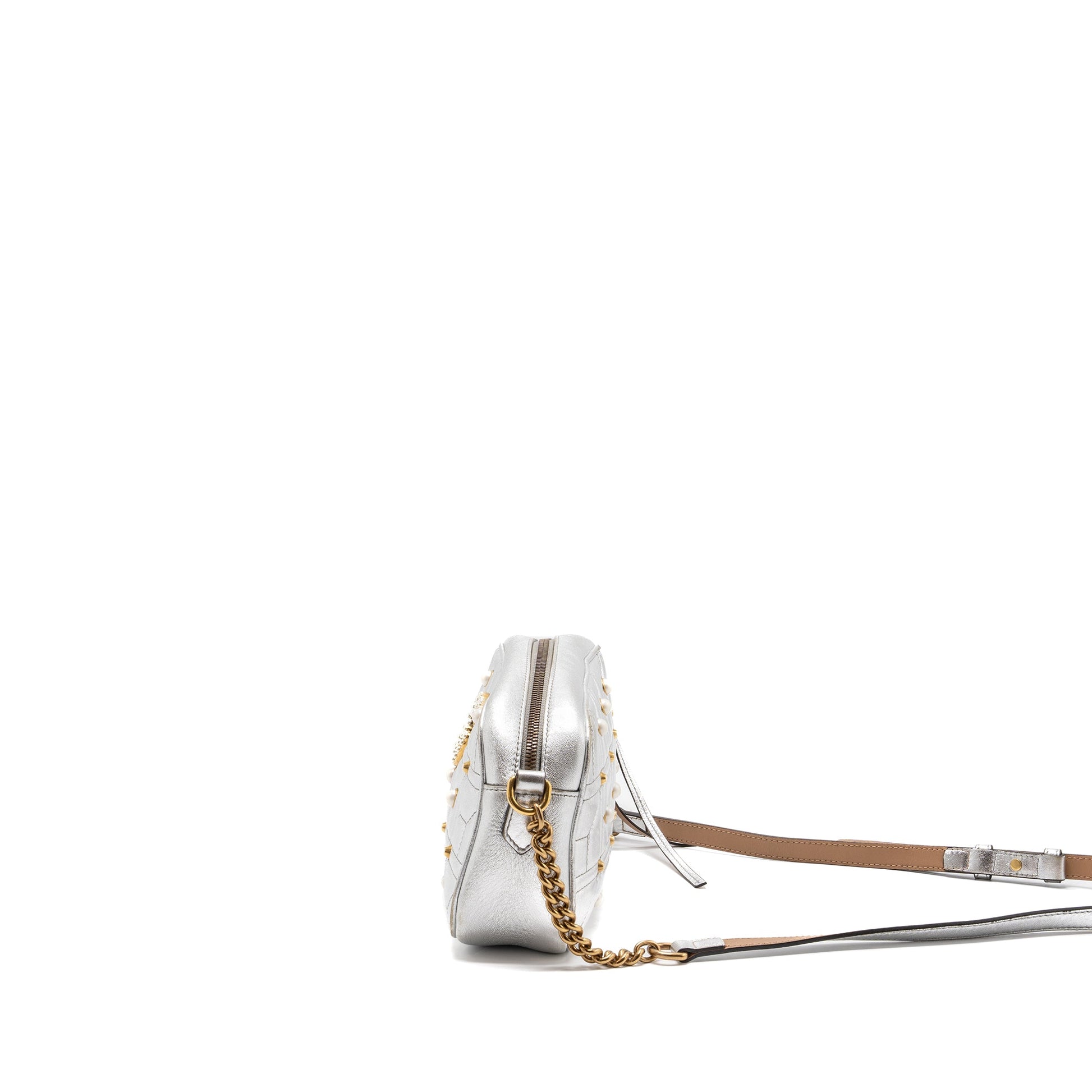 Gucci GG Marmont Camera Bag With Pearl Leather Silver