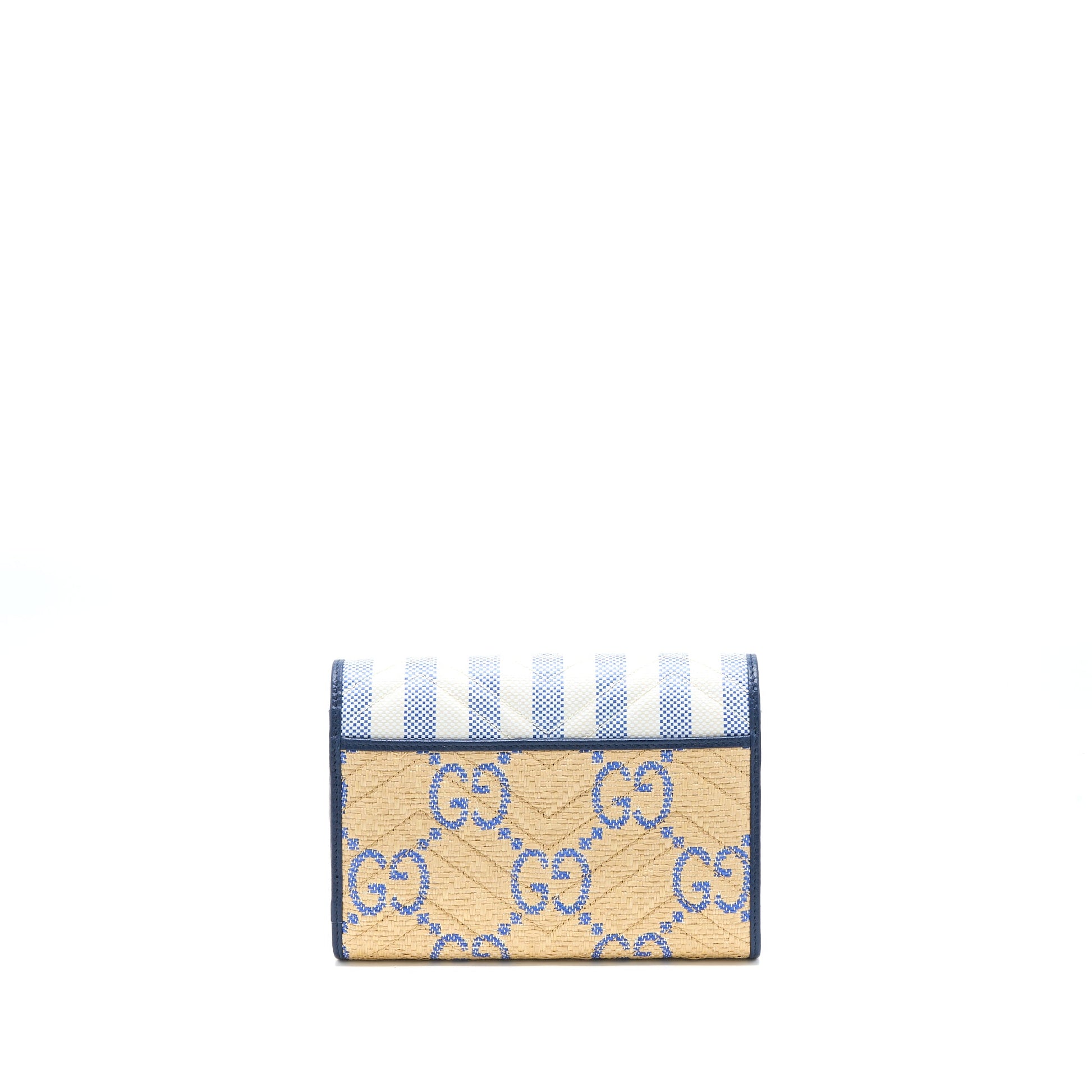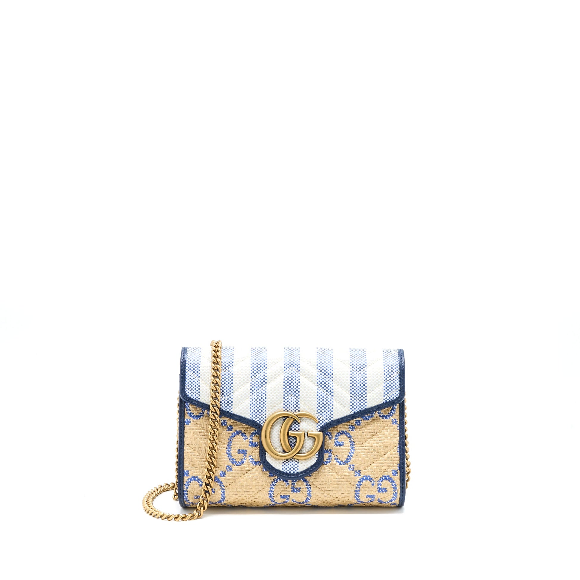 Gucci GG Marmont Flap Bag Matelasse Raffia Blue/Multicolour Brushed
