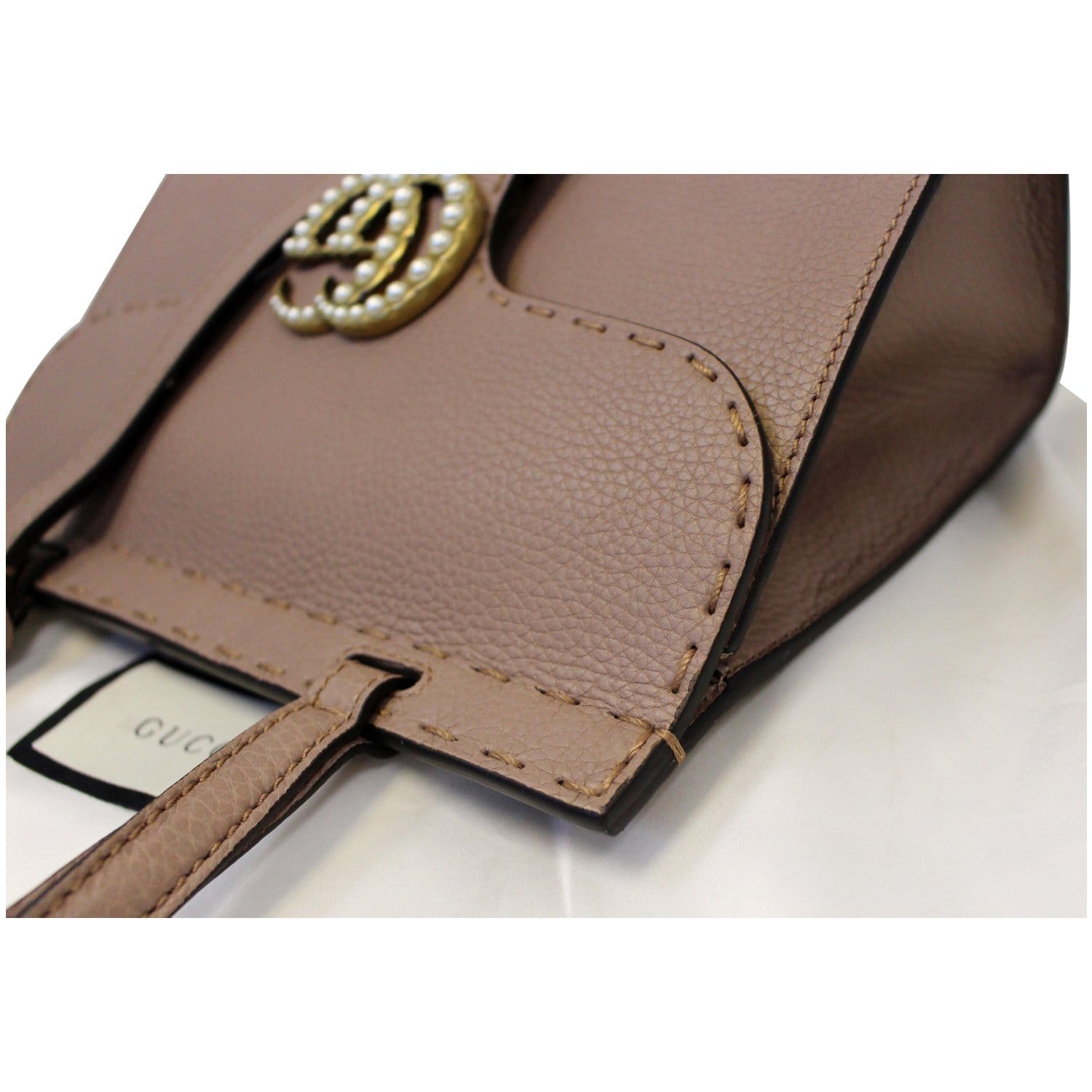 GUCCI GG Marmont Leather Top Handle Shoulder Bag Taupe 442622