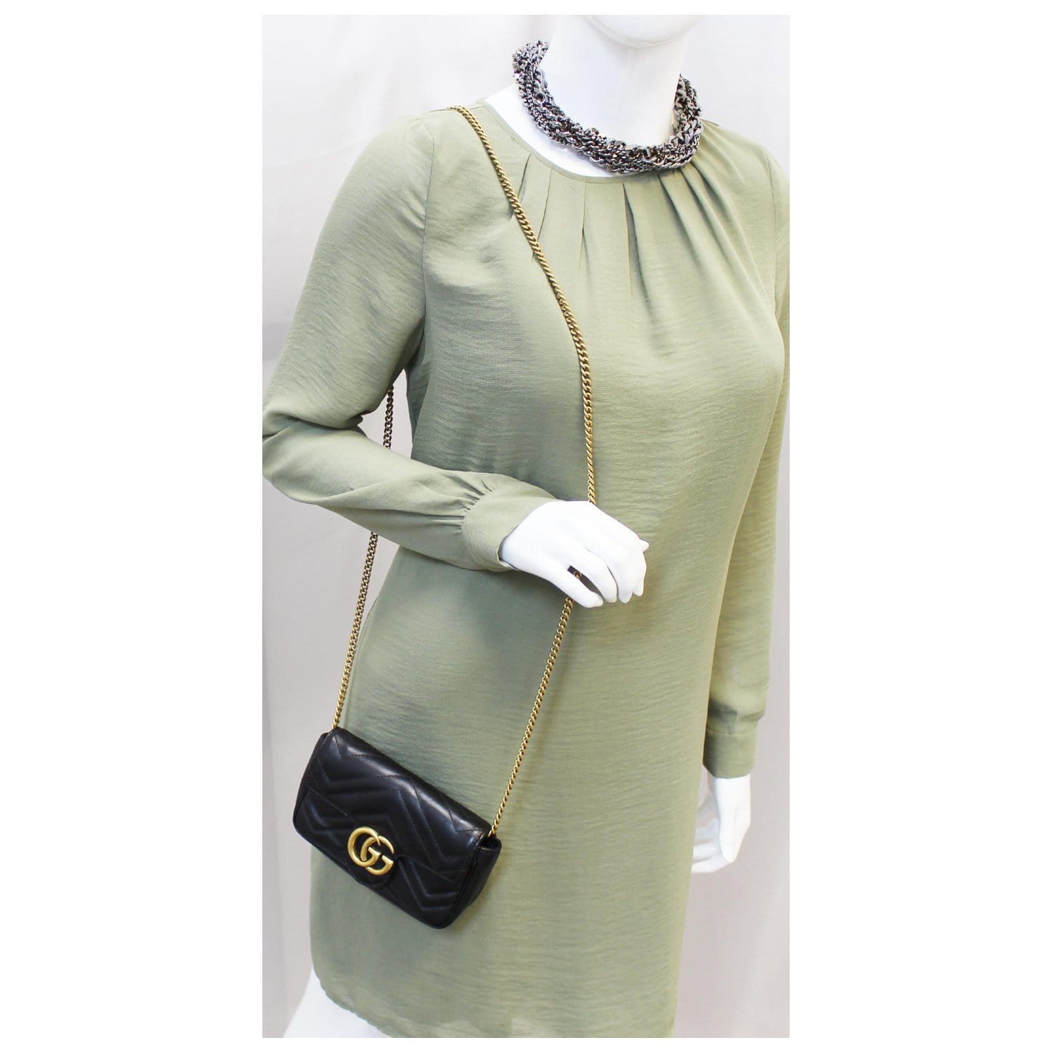 GUCCI GG Marmont Matelasse Black Leather Super Mini Crossbody Bag