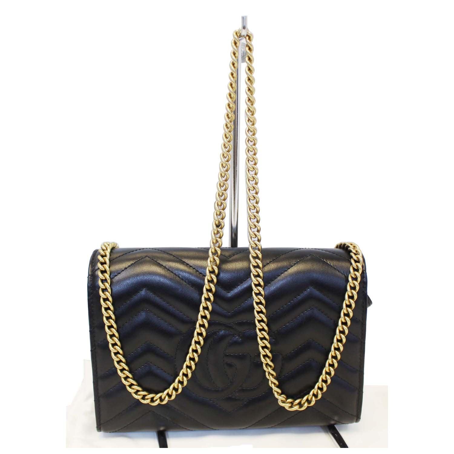 GUCCI GG Marmont Matelasse Black Leather Mini Crossbody Bag