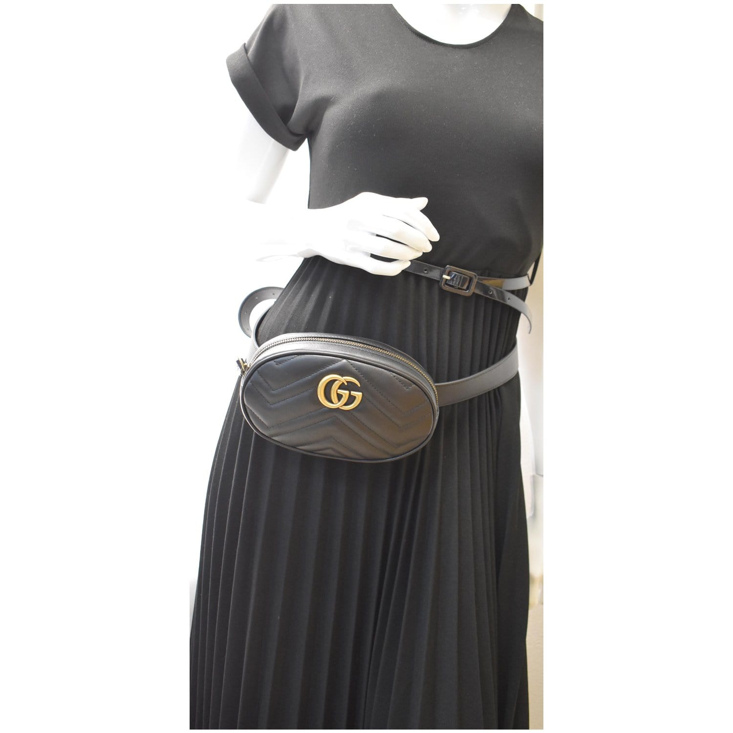 GUCCI GG Marmont Matelasse Leather Belt Bag Black 476434