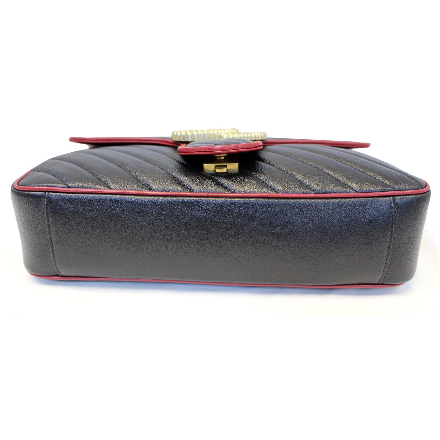 GUCCI GG Marmont Matelasse Leather Shoulder Bag Black/Red 443496
